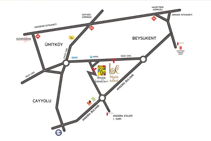 Beysu Evleri projesi, Çankaya Beysukent'te yer alıyor. Proje Gordion Alışveriş Merkezi ile Tsk Ankara Garnizonu Hatıra Ormanına yakın mesafede konumlanıyor.