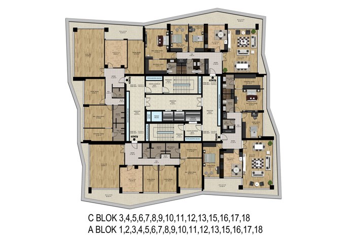 Biaport Özlüce projesinde 2+1 daireler 231 ila 267 metrekare, 3+1 daireler 319 ila 330 metrekare, 5+1 daireler ise 580 metrekare büyüklüklerle dizayn edildi.