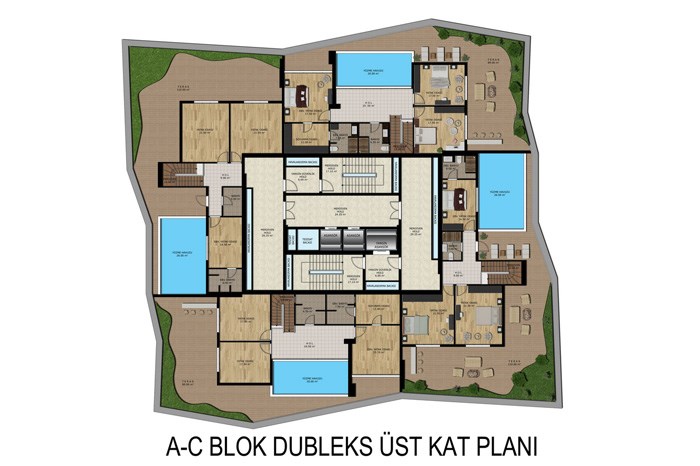 Ortak kullanıma açık gökyüzü terasları ile dikkat çeken Biaport Özlüce projesinde 5+1 loft dairelerin terasında özel yüzme havuzları bulunuyor. Sosyal donatı alanları blokların 14. katında tasarlandı.