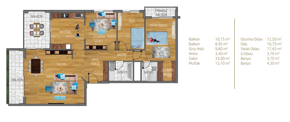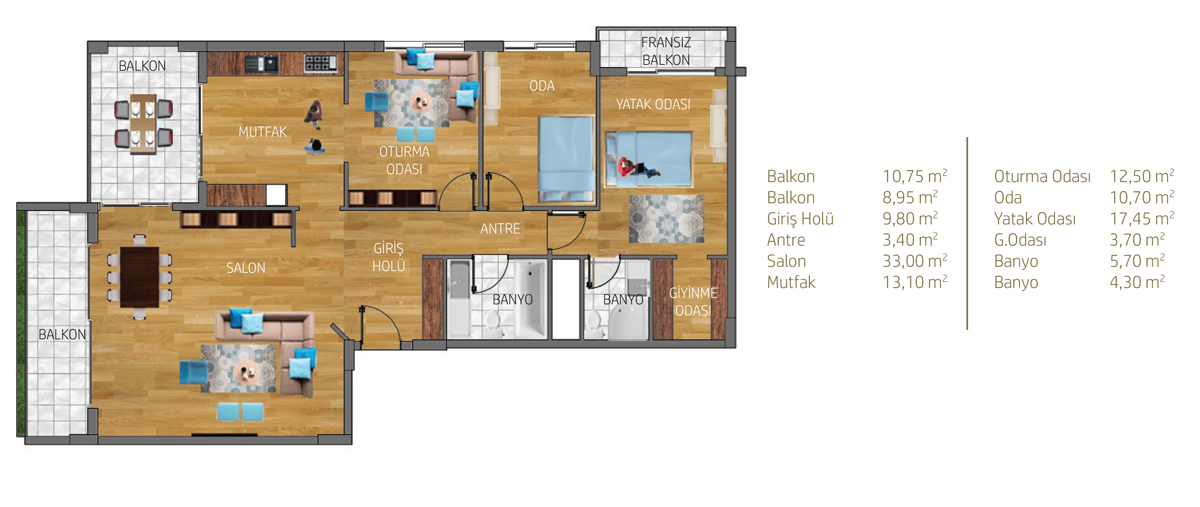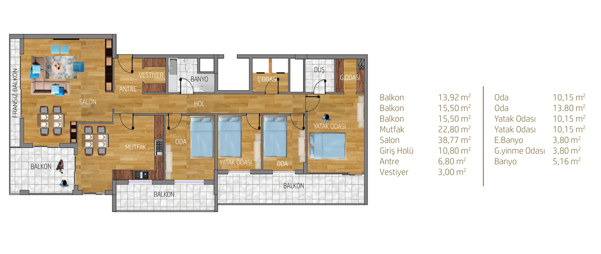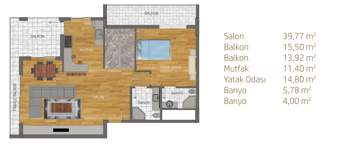 Bosphorus Ankara projesi toplam 650 konuttan meydana geliyor. Projede 2 oda 1 salon, 2,5 oda 1 salon, 3 oda 1 salon, 3,5 oda 1 salon, 4 oda 1 salon ve 4,5 oda 1 salon daire seçenekleri yer alıyor.