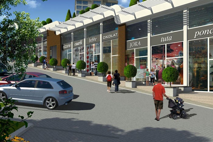 5 farklı tipte 1+1 ve 2+1 daire seçenekleri sunulan proje tek çatı altında toplanmış mağazalar zinciri olan AVM yerine, cadde dükkanlarıyla fark yaratmakta.