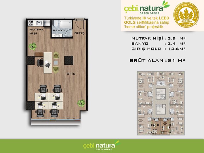 Teslimlerin hemen gerçekleştiği Çebi Natura Green Ofis projesi 3 bin metrekare alan üzerinde 14 katlı tek blok halinde yükseliyor. Projenin 12 katı home office, 2 katı dükkan, 4 katı ise otoparktan oluşuyor.