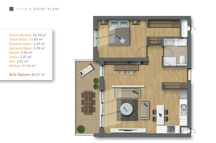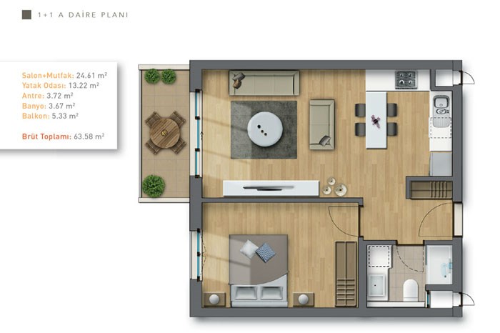 - Çınarlı Bahçe Projesinde 1 Oda 1 Salon Daireler 276 Bin Lira