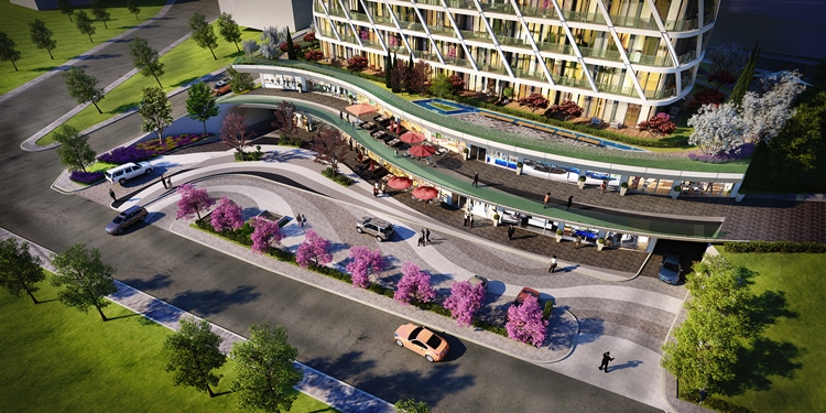 Projedeki tüm dairelerde 13 metrekareye varan balkonlar yer alıyor. Projenin en alt 2 katı ise mağaza,restoran gibi ticari alanlara ayrıldı.