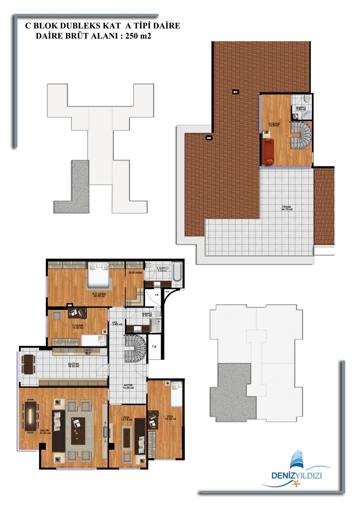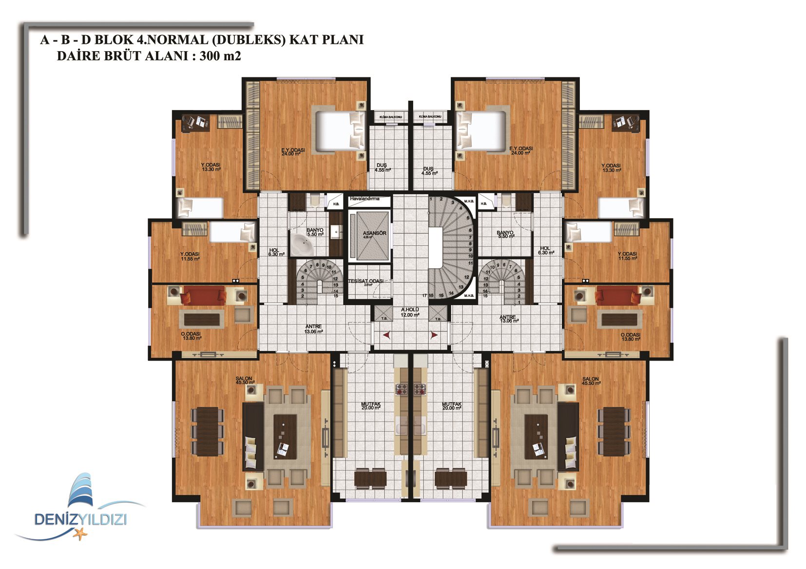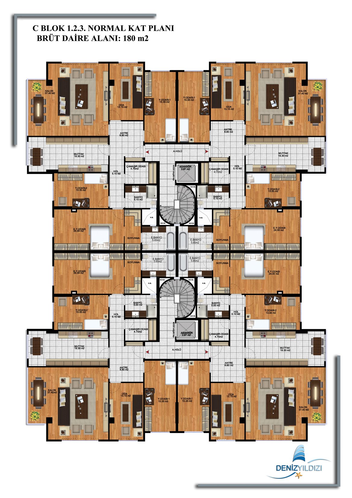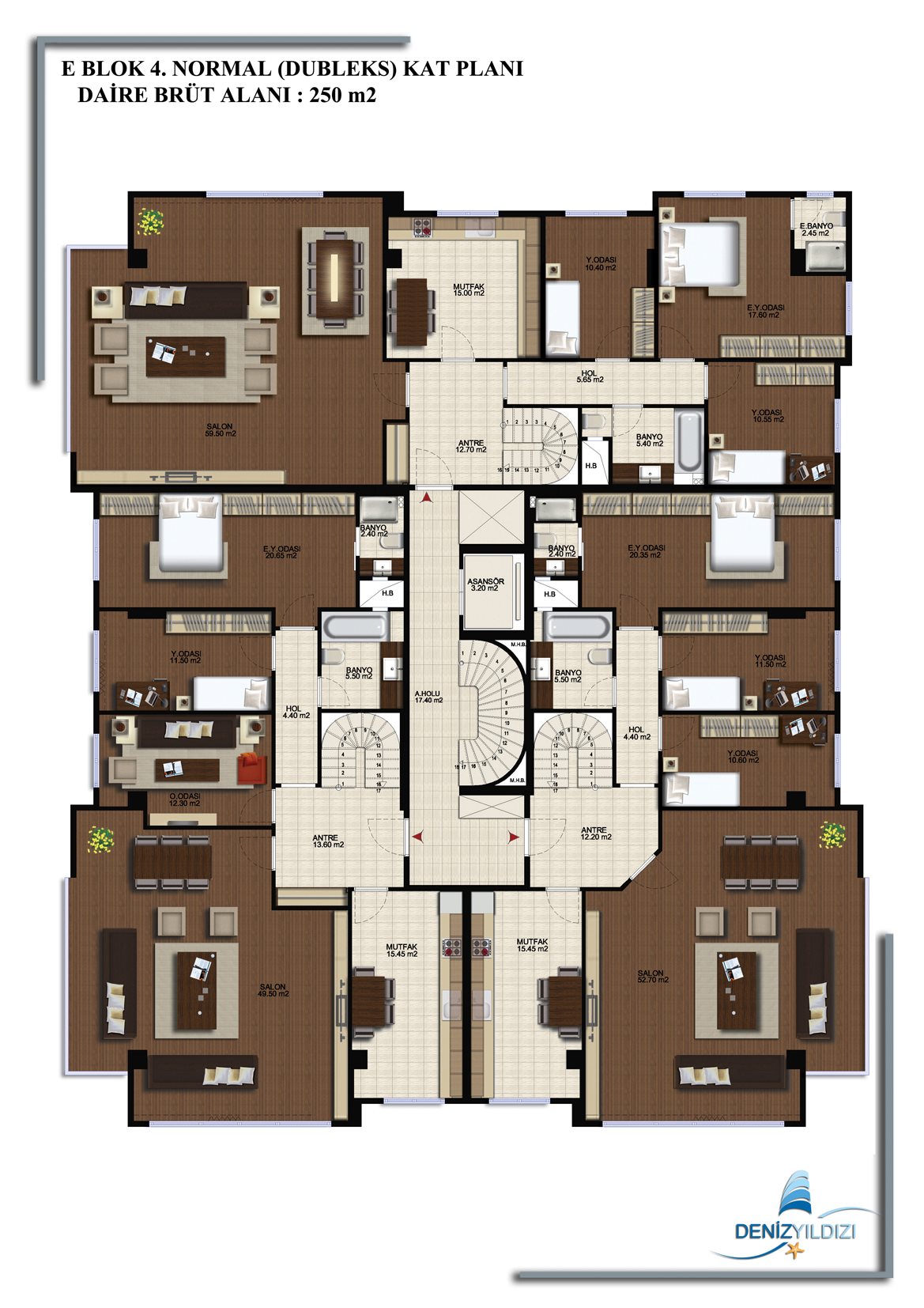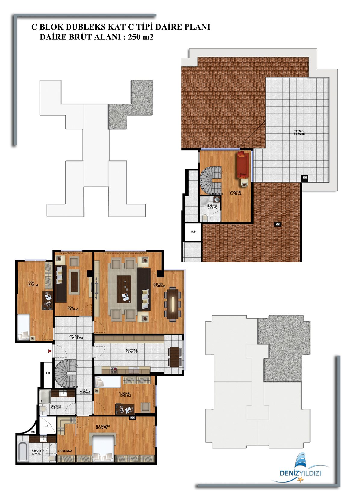 Çolakoğlu Deniz Yıldızı projesinde 3 oda 1 salon daireler 138 ila 155 metrekare, 4 oda 1 salon daireler 154 ila 193 metrekare ve 6 oda 2 salon daireler 250 ila 300 metrekare büyüklüklerle dizayn edildi.