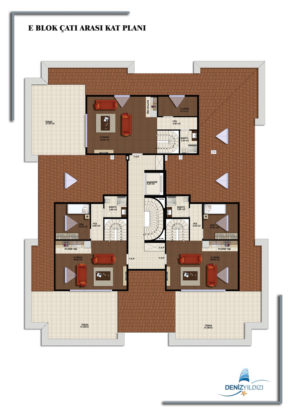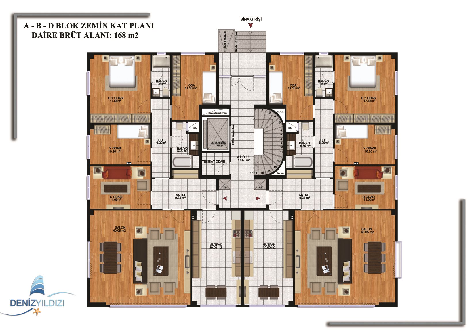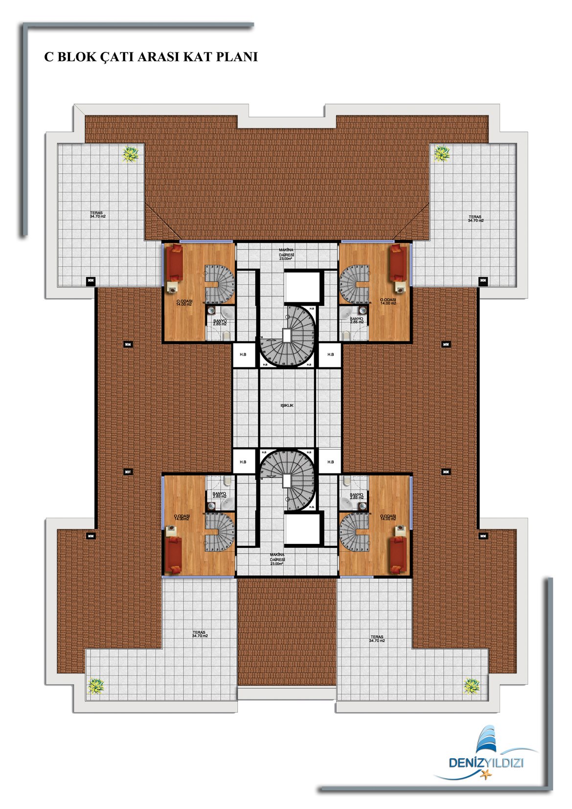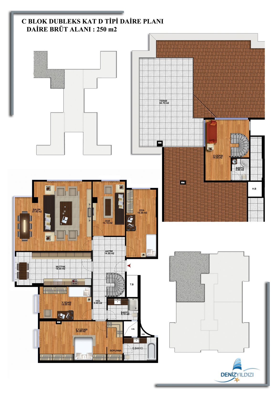 Çolakoğlu Deniz Yıldızı projesinde 3 oda 1 salon daireler 138 ila 155 metrekare, 4 oda 1 salon daireler 154 ila 193 metrekare ve 6 oda 2 salon daireler 250 ila 300 metrekare büyüklüklerle dizayn edildi.