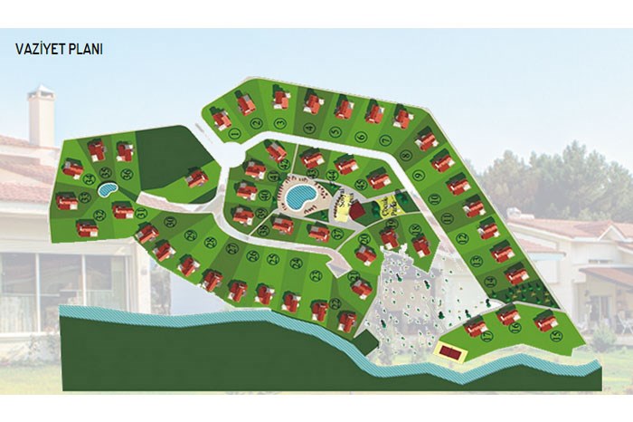 - 66 dönüm arazi içerisinde 1400 metrekarelik müstakil tapulu 240 metrekarelik villalar oturuma hazır durumda.