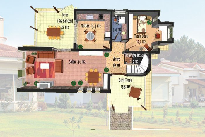 - Projede villalar brüt 240 metrekare, net 200 metrekare, 4+1 dubleks tipinde...