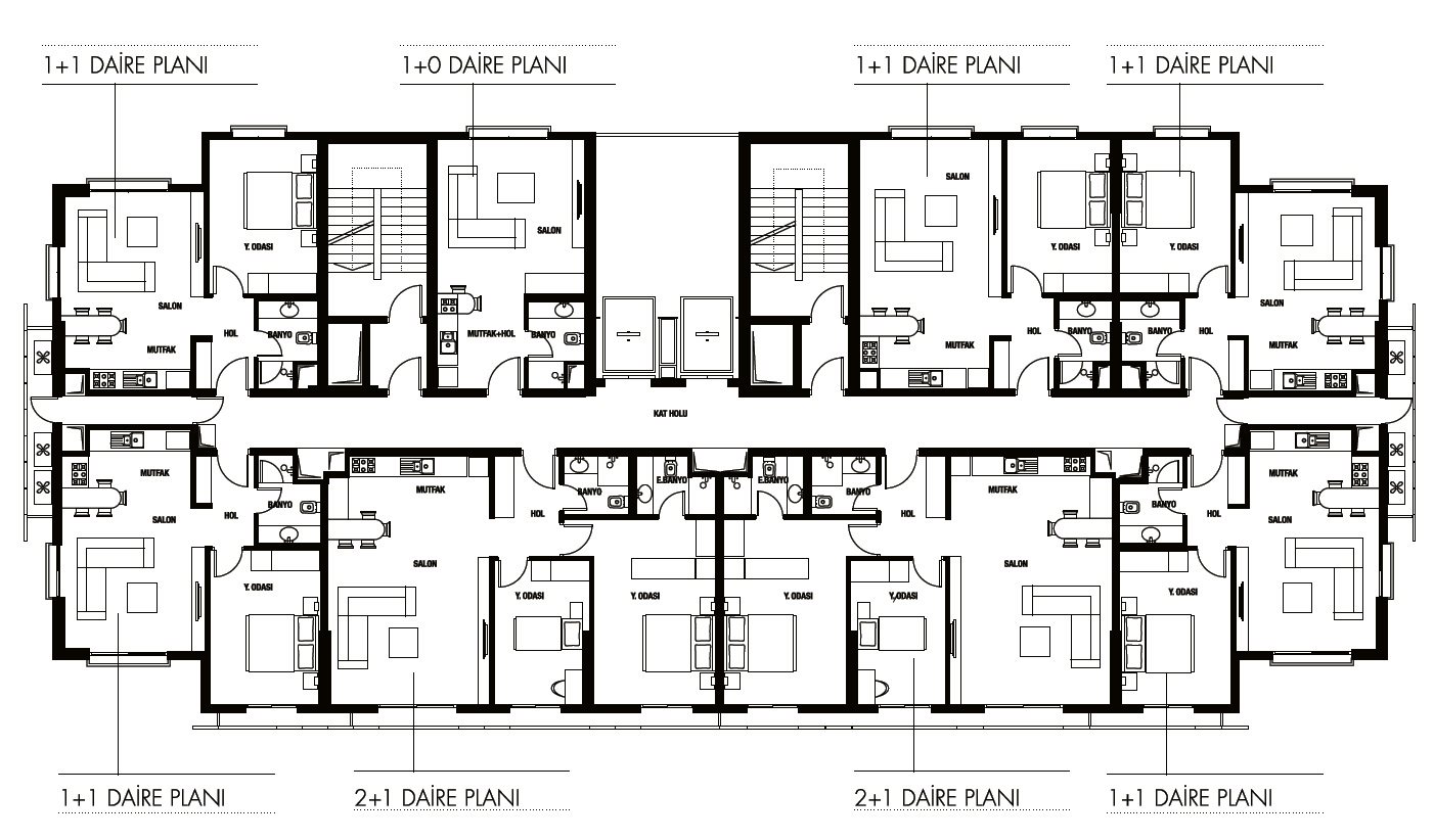 Toplam 184 adet daire ve 14 adet mağazadan meydana gelen Double Park Residence projesinde 22 adet stüdyo, 112 adet 1 oda 1 salon, 44 adet 2 oda 1 salon ve 4 adet 3 oda 1 salon daire yer alıyor.