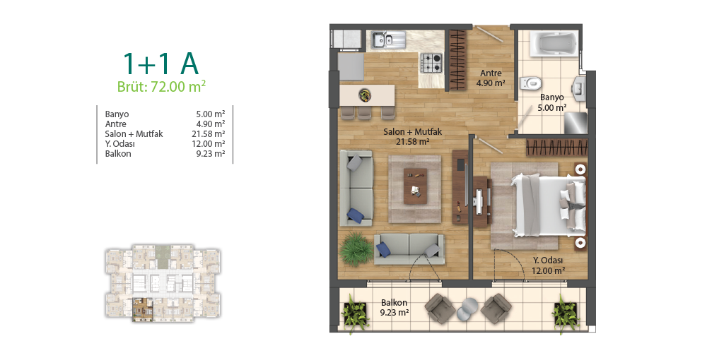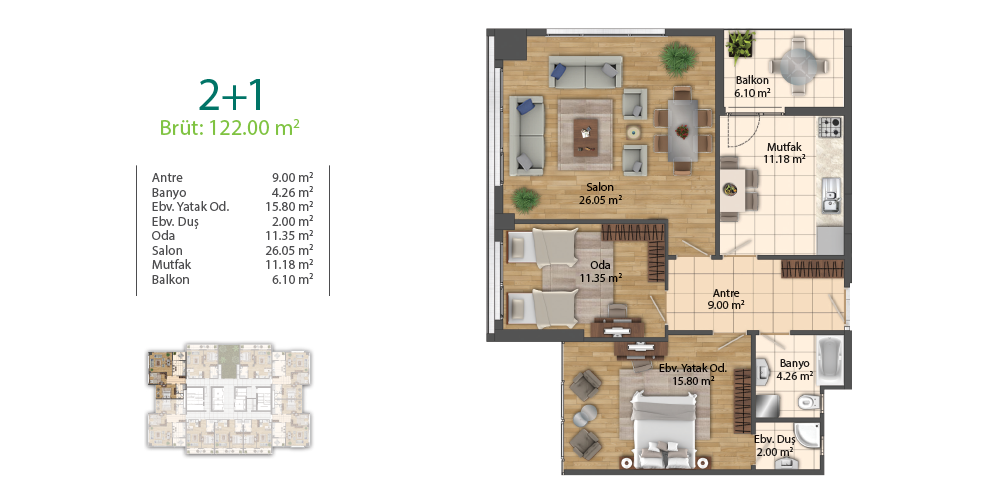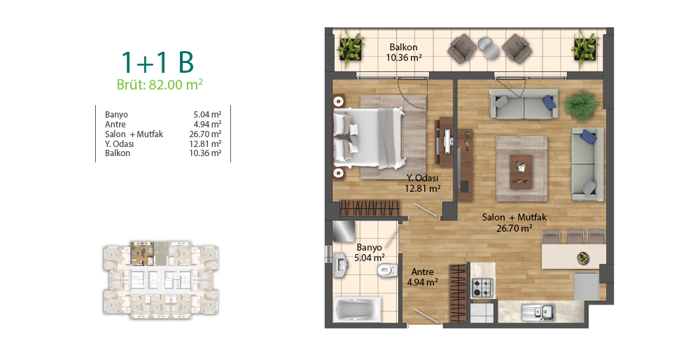 Evalpark İstanbul projesinde 1 oda 1 salon dairelerin alanları 72 ila 82 metrekare arasında değişirken, 2 oda 1 salon dairelerin alanları 122 metrekare olarak belirlendi.