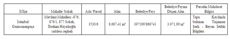 İstanbul Gaziosmanpaşa Belediye Başkanlığı, mülkiyeti kendisine ait olan 1 adet arsayı satılığa çıkartıyor...