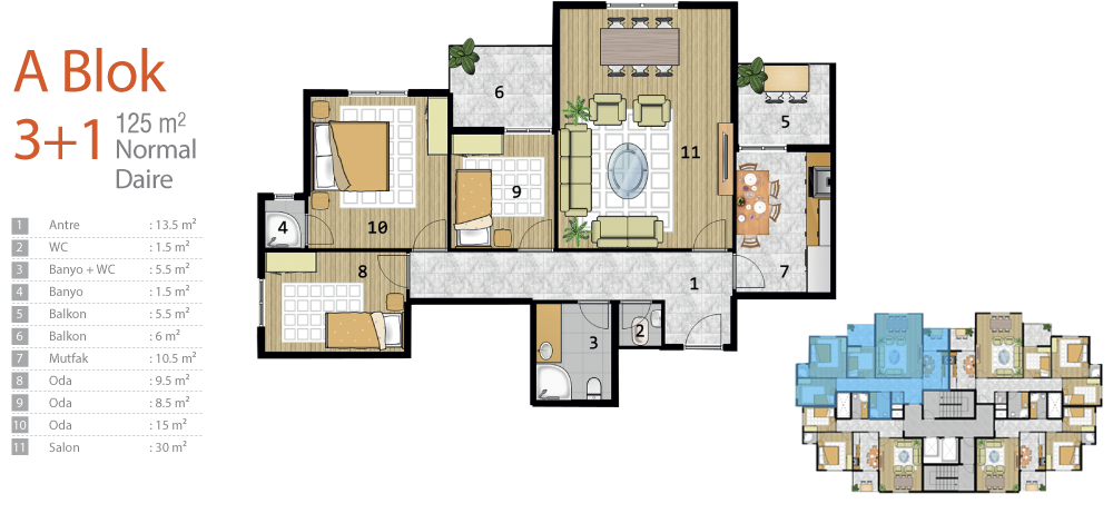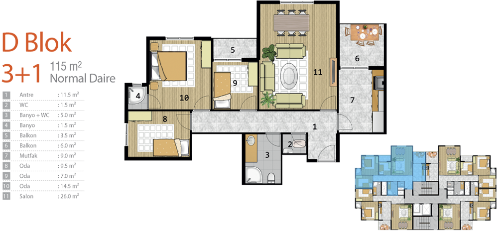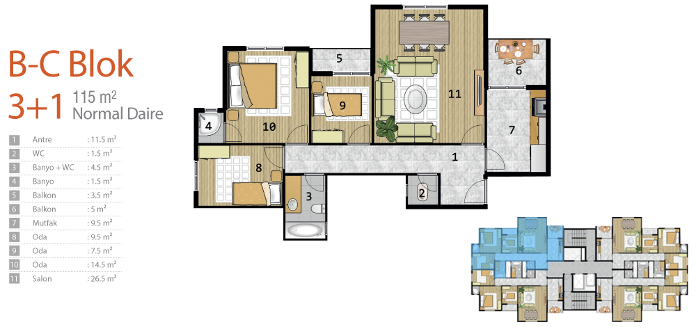 Toplam 240 adet konuttan meydana gelen Göksu Park Göztepe projesinde 2 oda 1 salon ve 3 oda 1 salon daire seçenekleri yer alıyor. Projede 2+1 daireler 90 metrekare, 3+1 daireler 110 ve 115 metrekare büyüklüklerle dizayn edildi.