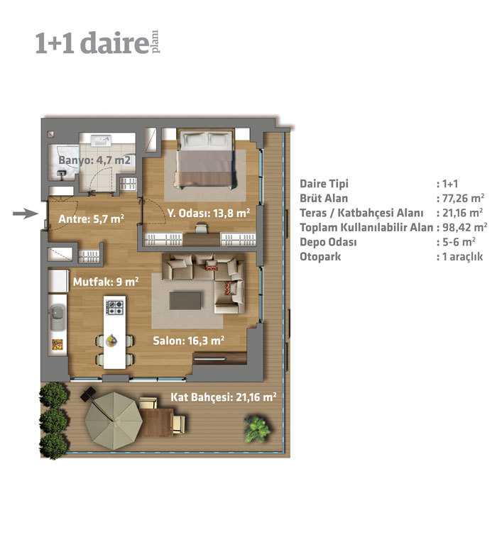 Toplam 174 adet konuttan meydana gelen Greenist projesi 43 adet 1+1, 42 adet 2+1, 62 adet 3+1, 10 adet 4+1, 15 adet 4,5+1 ve 2 adet 5+1 daire yer alıyor.
