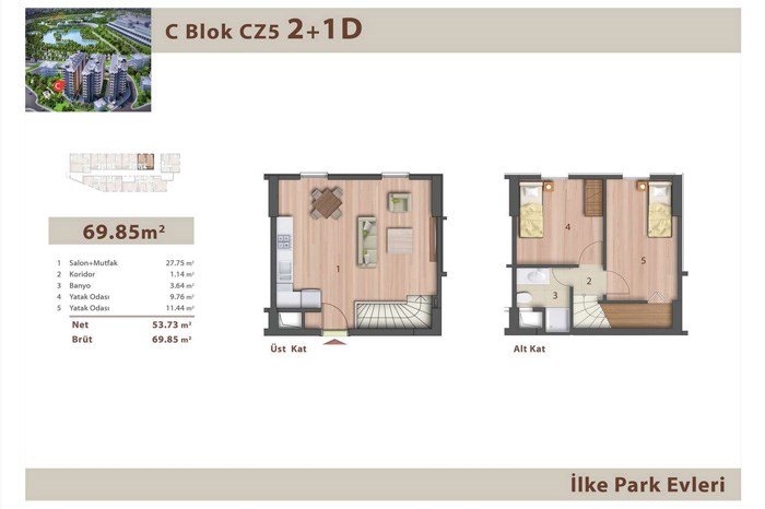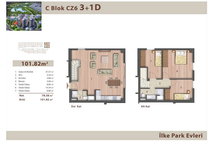 İlke Park Evleri Projesi Plan ve Kroki Görselleri: