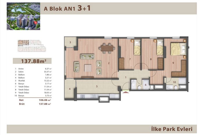 - İlke Park Evleri Projesi 11 Katlı 3 Bloktan Oluşuyor