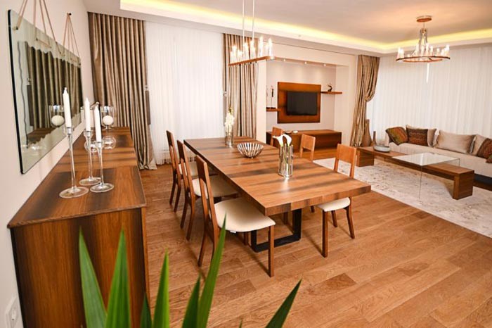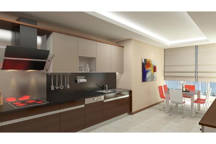 - Butik konseptli projede dairelerin teslimleri ankastre ürünler, giyinme odası dolapları, vestiyer ile birlikte yapılıyor.