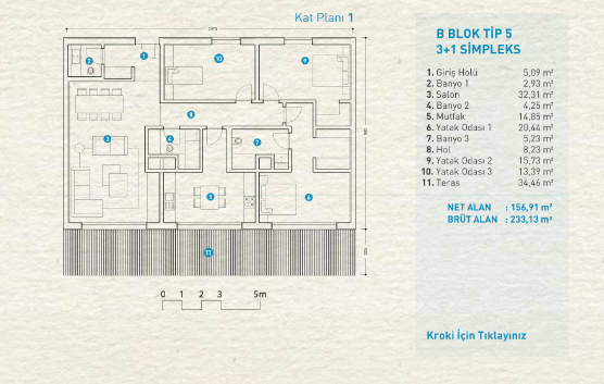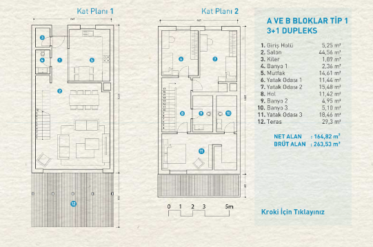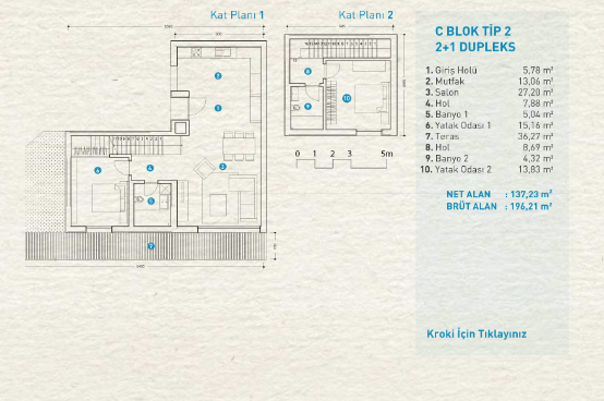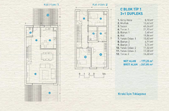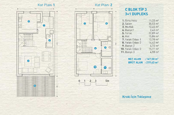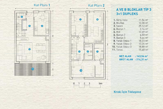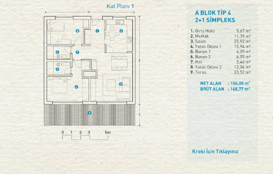 Projede 2+1'ler 106 metrekare, 3+1'ler 156,91 metrekare, 2+1 dubleksler 122,29 ve 137,23 metrekare, 3+1 dubleksler 143,56 ila 177,25 metrekare arasında alanlarla dizayn edildi.