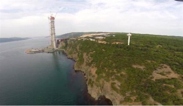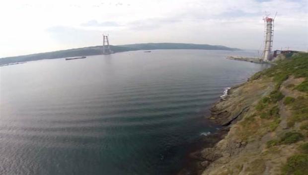 Yapımı hızla süren İstanbul'un üçüncü köprüsü olacak projenin inşaat çalışmaları da havadan görüntlendi.