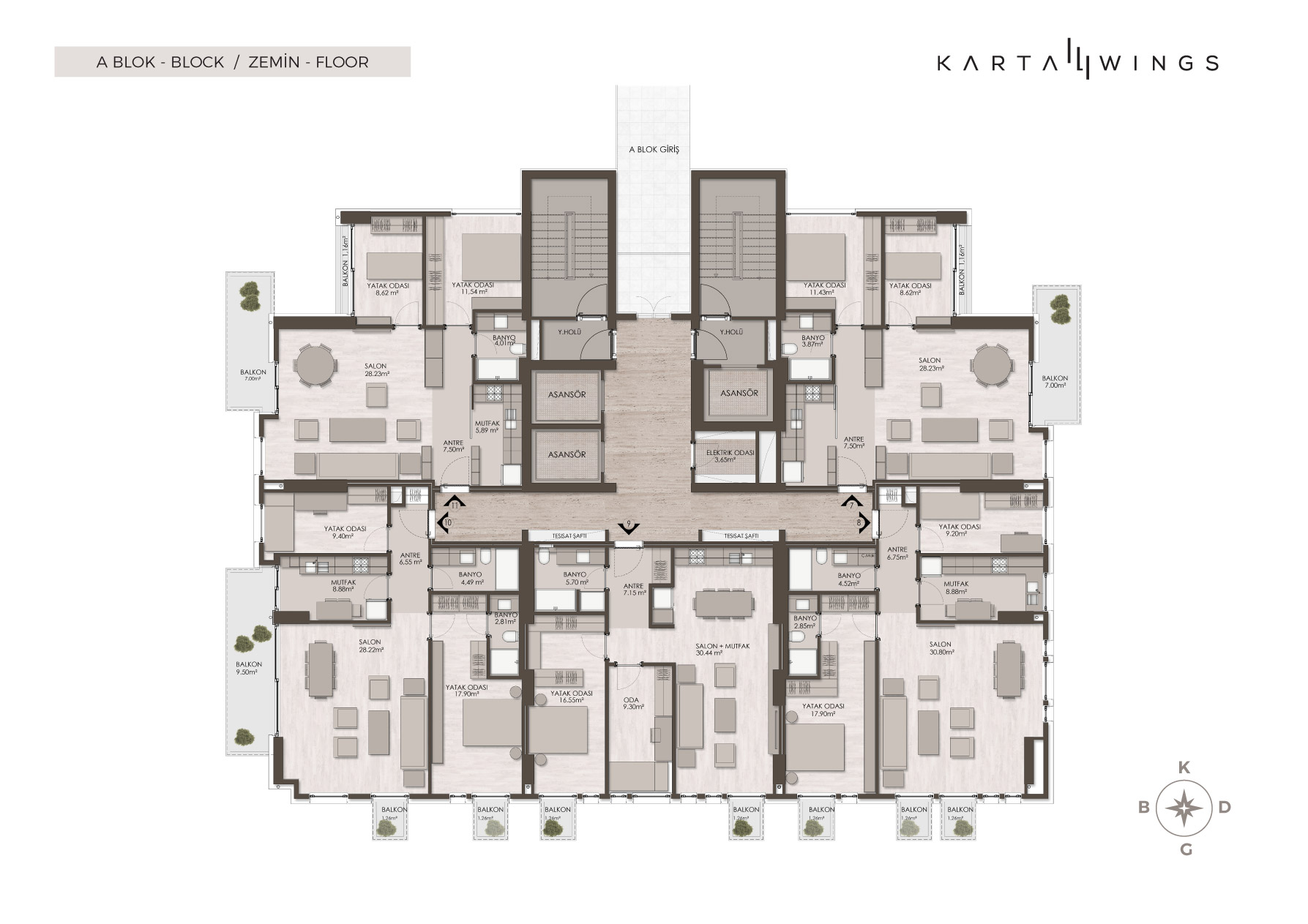 Umran Yapı-Amad Gayrimenkul ortaklığında hayata geçirilen Kartal Wings projesi, İstanbul Kartal'da hayata geçiyor. 3 Bloktan oluşan projede 278 adet konut ile 9 adet dükkan yer alıyor.
