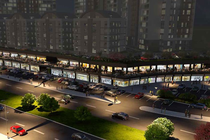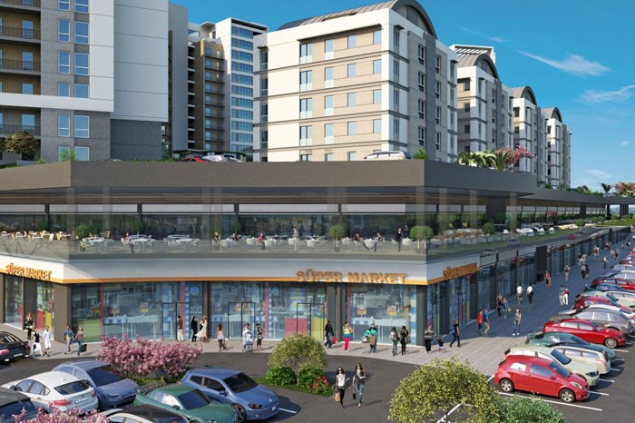Emlak Konut GYO - Makro İnşaat - Akyapı Ortak Girişimi'nin İstanbul Başakşehir'de yükselen projesi Kayaşehir Anacadde, 63 dükkandan oluşuyor.