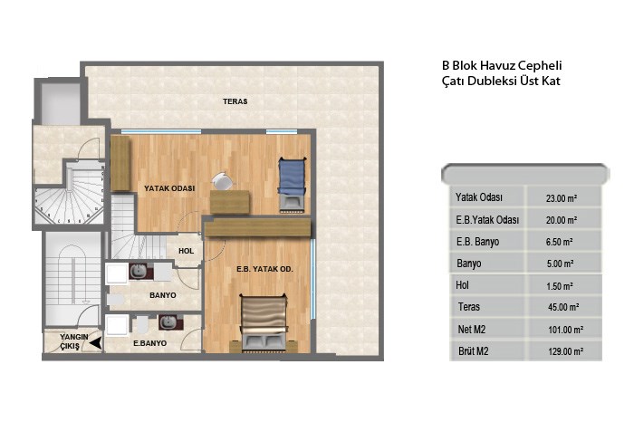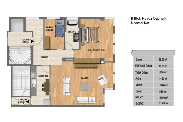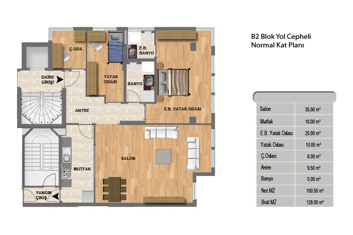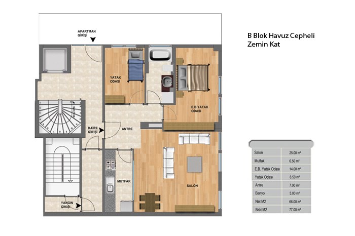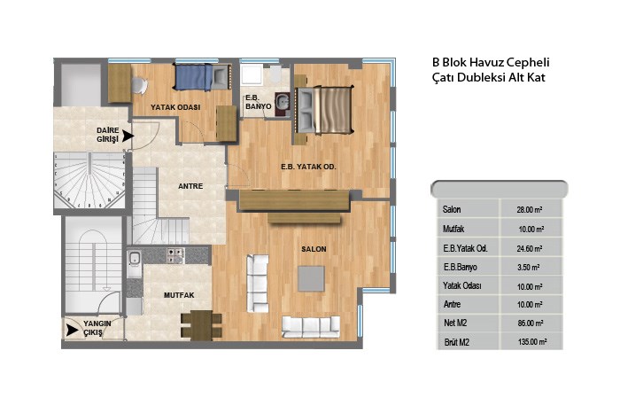 Keten Ihlamur projesinde 2+1 daireler 77 ila 115 metrekare, 3+1 daireler 130 metrekare, 4+1 daireler ise 240 metrekare alanlarla dizayn edildi.