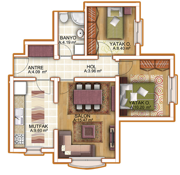 95 metrekarelik 2 oda 1 salon daire : 163 bin lira ile 200 bin lira arasında değişen ve