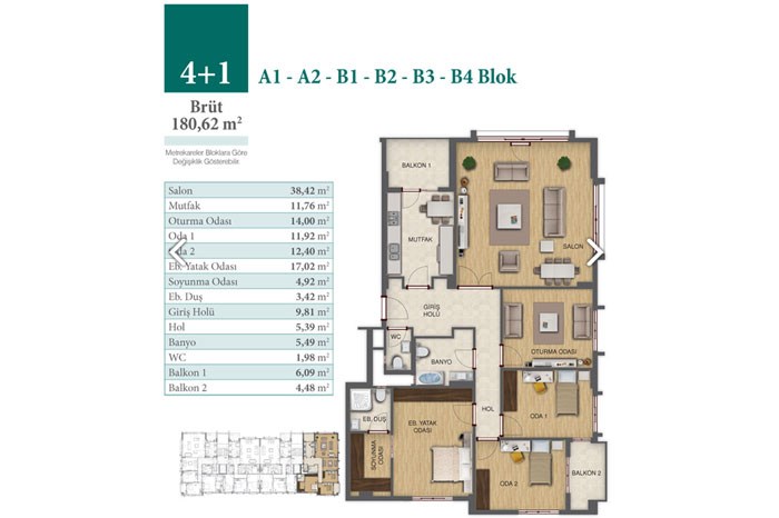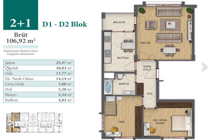 2 oda 1 salon daireler : 205 bin lira ile 226 bin lira arasında değişen,