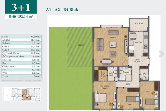 3 oda 1 salon daireler : 218 bin 131 lira ile 218 bin 131 lira arasında değişen ve