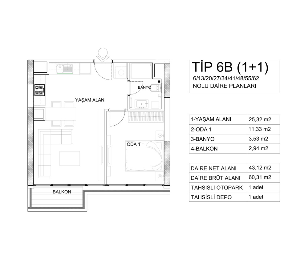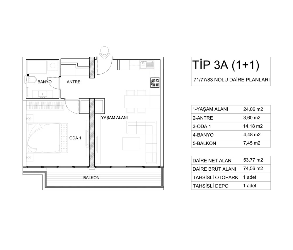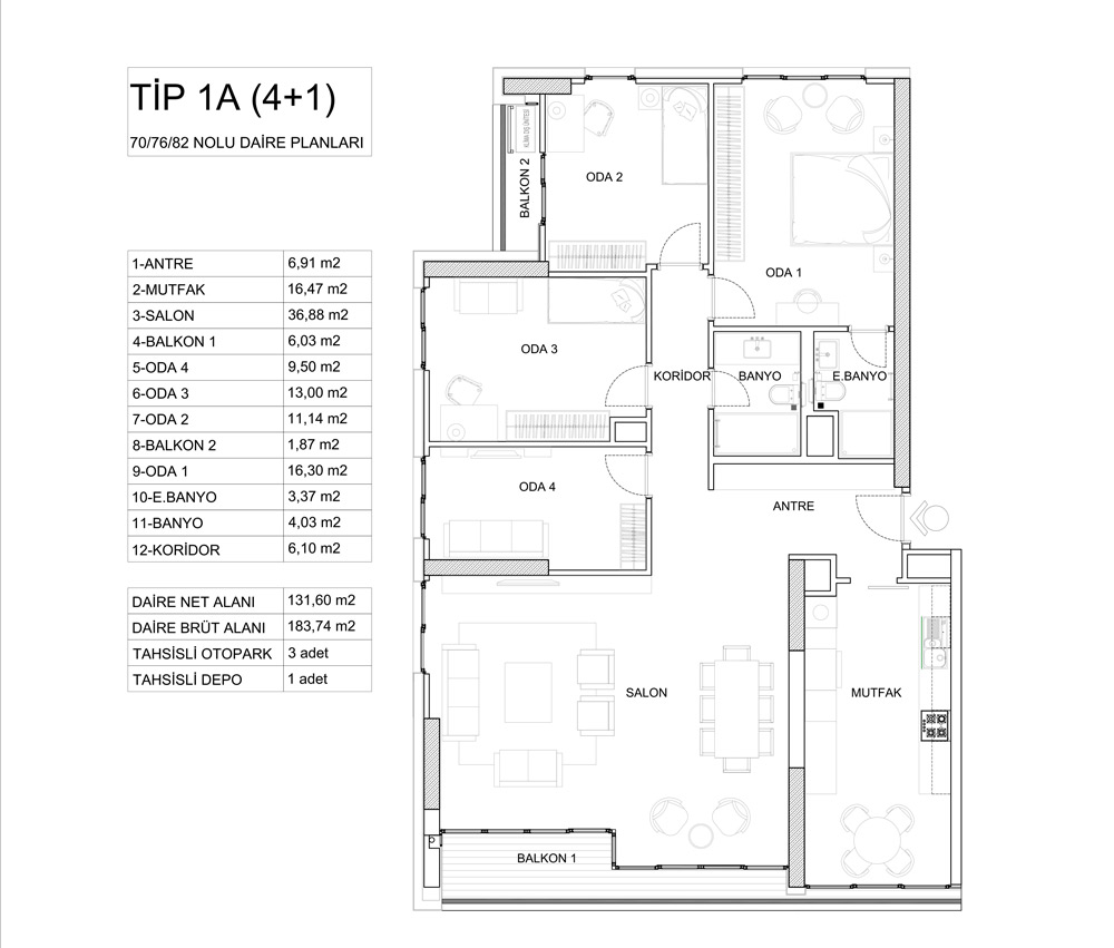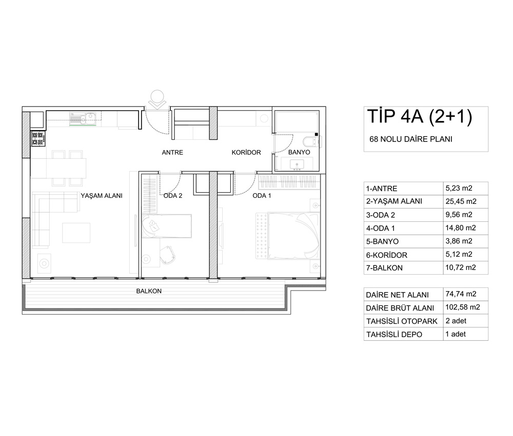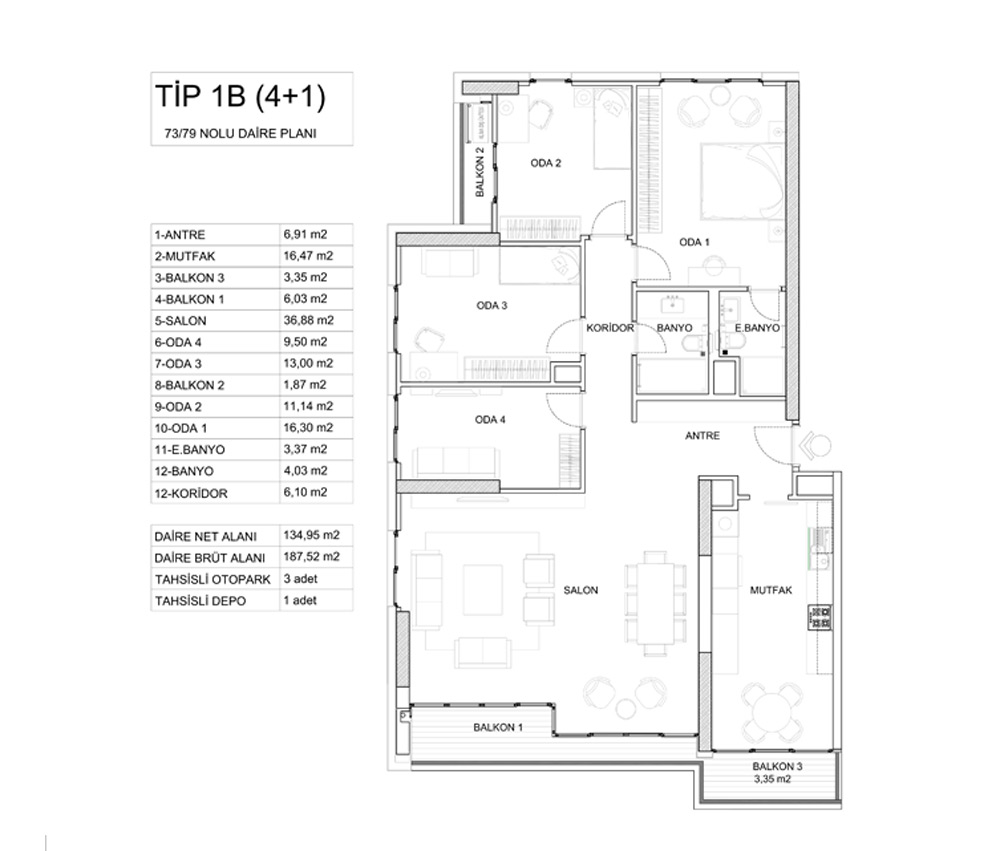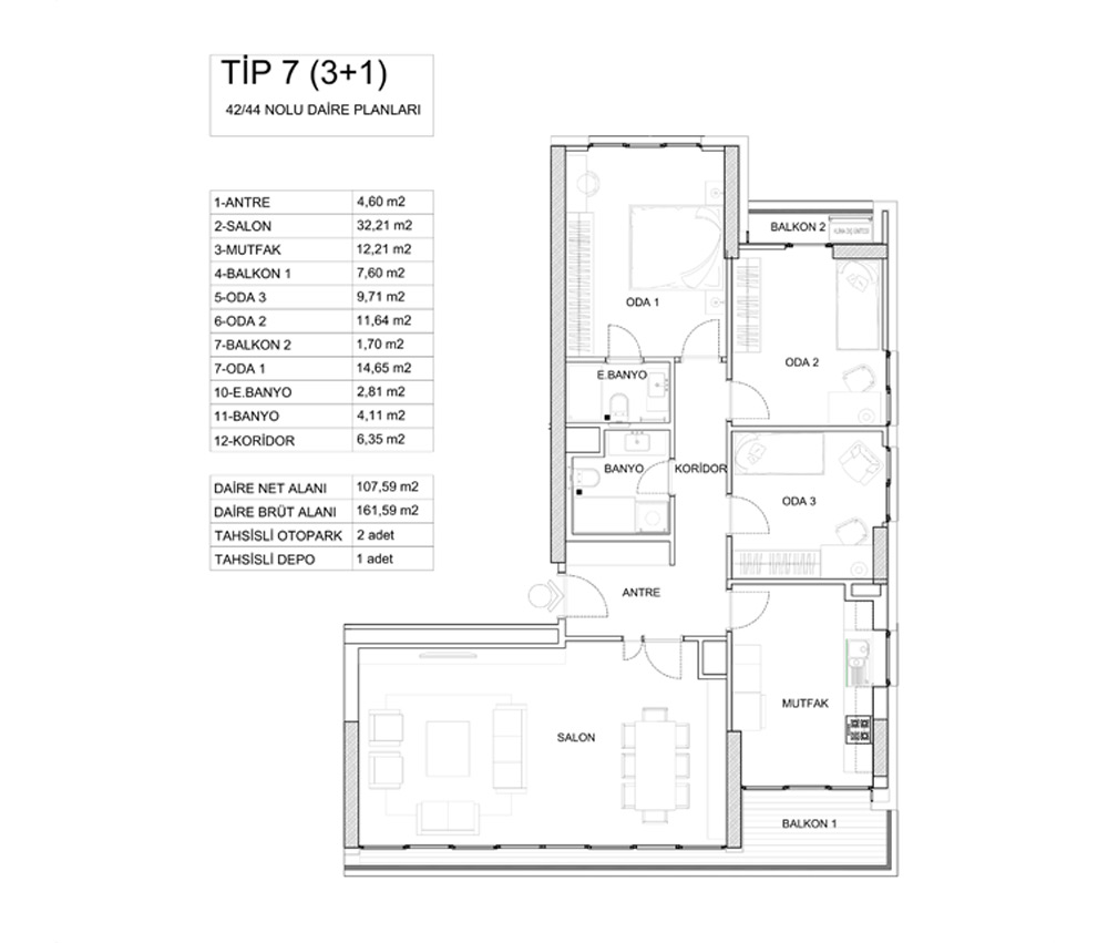 Kontek Düet Çiftehavuzlar projesinde 1 oda 1 salon, 2 oda 1 salon, 3 oda 1 salon ve 4 oda 1 salon daire seçenekleri yer alıyor. Projedeki 1+1'ler 60,31 ile 74,56 metrekare, 2+1'ler 98,51 ile 126,85 metrekare, 3+1'ler 161,59 metrekare, 4+1'ler 170,90 ile 187,52 metrekare arasında değişiyor.