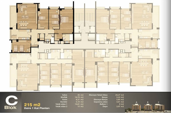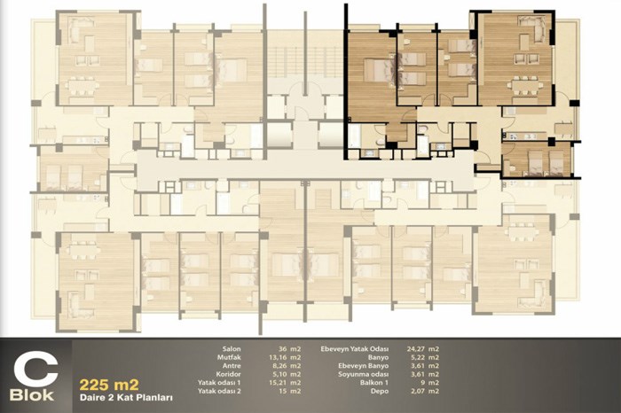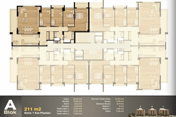 - Tamamı 4 oda 1 salon dairelerden meydana gelen projenin tasarımı Adnan Kılıçoğlu'na ait.