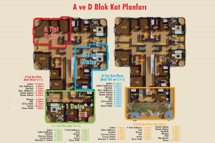 Mabeyn Evleri projesinde satışa sunulan dairelerin güncel fiyat listesi :