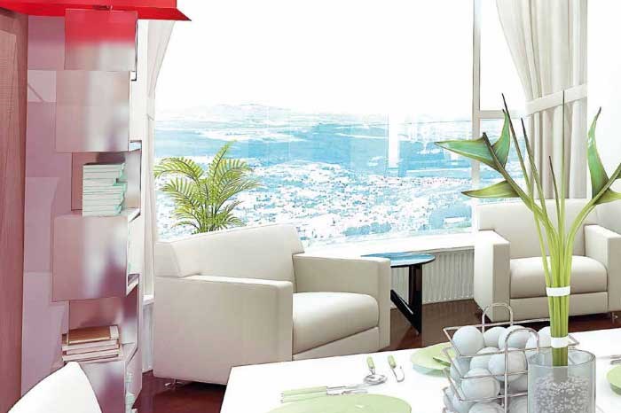 3 oda 1 salon daireler : 594 bin lira ile 888 bin lira arasında değişen fiyatlarla alıcılarını bekliyor.