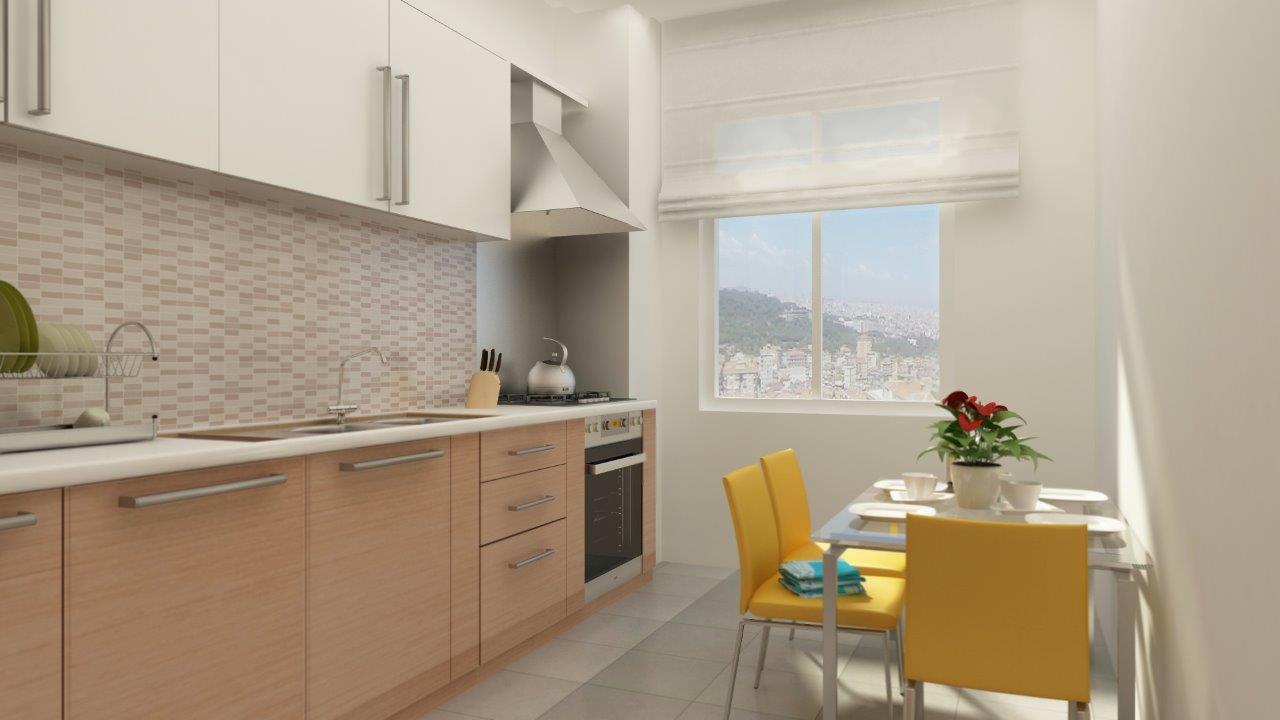- 61 metrekare ile 165 metrekare arasında değişen dairelerde ankastre ocak, davlumbaz ve fırın birlikte veriliyor.