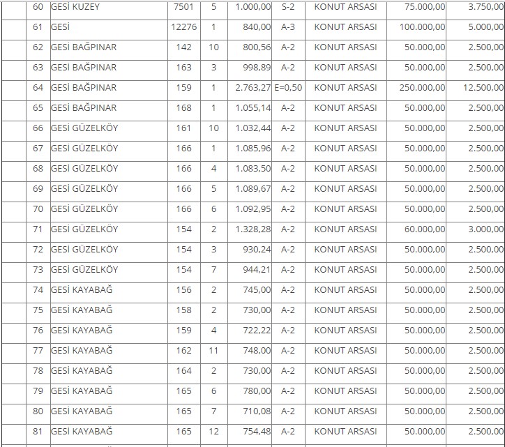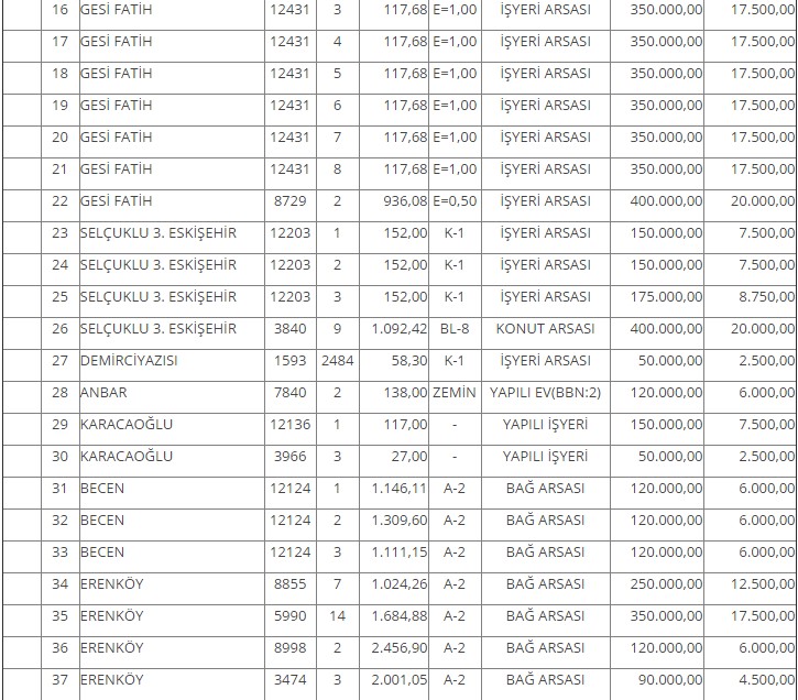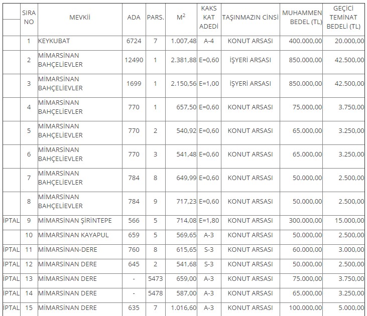 Kayseri Melikgazi Belediye Başkanlığı, mülkiyetinde bulunan çeşitli nitelikte 86 adet gayrimenkulü satışa çıkartıyor...Melikgazi Belediye Başkanlığı, 59 mesken arsası, 19 işyeri arsası ve 8 bağ ve sayfiye arsasını açık teklif usulüyle satışa çıkartıyor.
