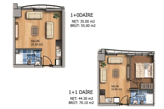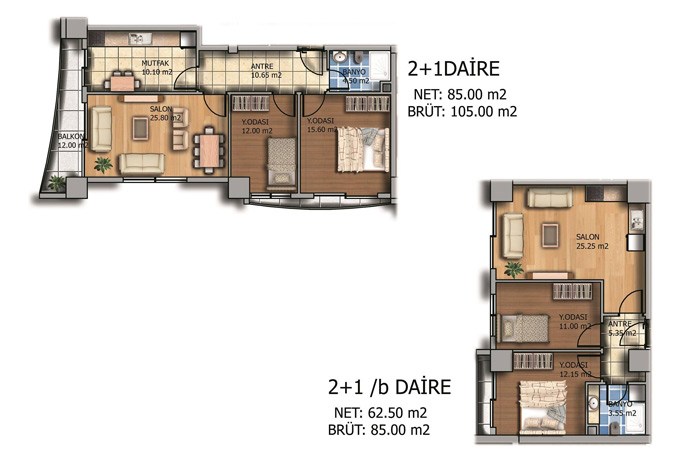 Mert Life Residence projesinde stüdyo daireler brüt 54, net 30 metrekare, 1+1 daireler brüt 72, net 50 metrekare, 2+1 daireler brüt 85 ila 105, net 62 ila 85 metrekare, 3+1 daireler ise brüt 145, net 120 metrekare büyüklüklerle dizayn edildi.