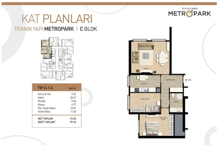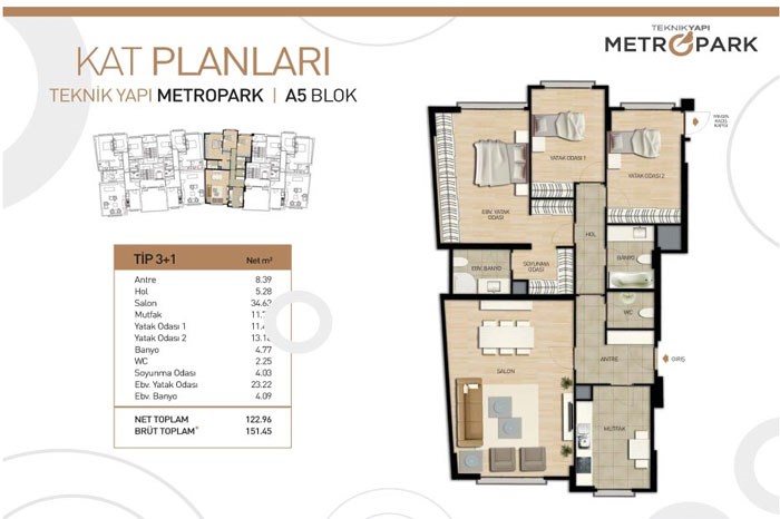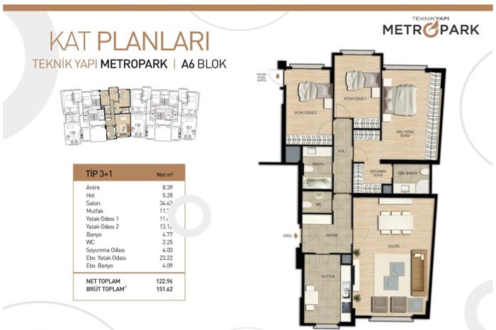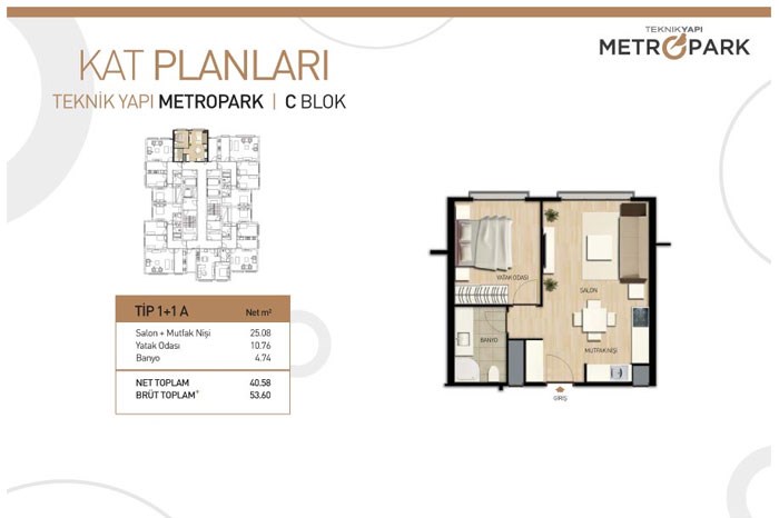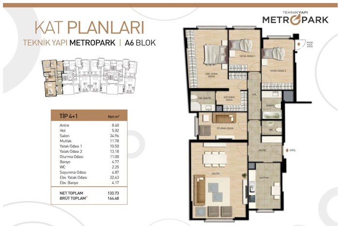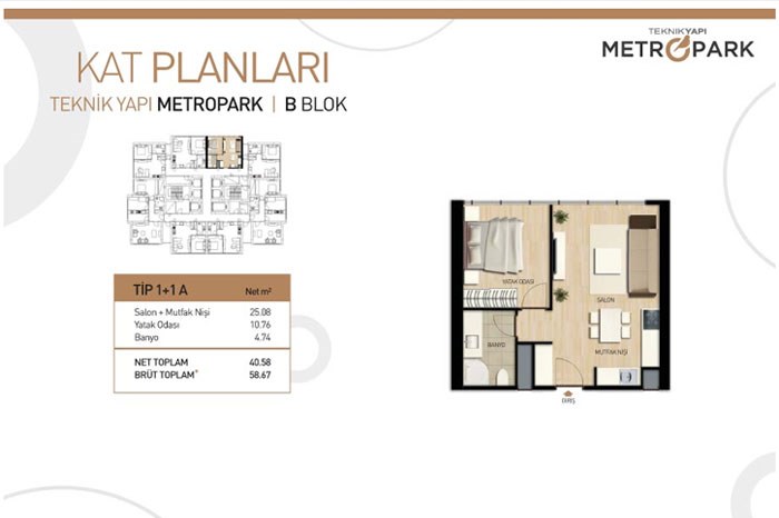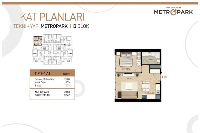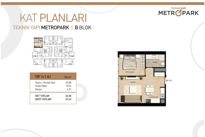 Teknik Yapı güvencesiyle içerisinde iki rezidans kulesi bulunan Metropark projesi 446 adet 1+1 ve 144 adet 2+1 tipi daireden toplam 1272 rezidansdan oluşmakta. 213 bin 800 metrekarelik araziye kurulan Metropark projesi alıcılarına 1+0, 1+1, 2+1, 3+1 ve 4+1 olmak üzere 5 farklı konut tipi seçeneği sunuyor. Dairelerin metrekare cinsinden büyüklükleri ise 28 ile 164 metrekare arasında değişiklik gösteriyor.
