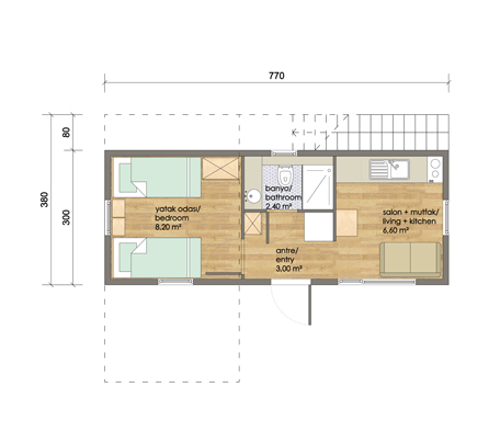 Modül Ev'in kalıcı yaşam alanlarının konfor ve estetiğine sahip olduğunu belirten Steelife Genel Müdürü Mimar Bülent Aydın, 12 farklı standart tipte üretilen evlerin istenirse kişiye özel olarak tasarlanabildiğini belirtti. Hızlı bir üretimin ardından kurulumun gerçekleştirildiğinin altını çizen Aydın,"İsteğinize göre projelendirilebilen Modül Evinize hayal bile edemeyeceğiniz zaman ve maliyet tasarruflarıyla sahip olabilirsiniz. Üretim süreci modeline göre 1 hafta ile 10 gün arasında sürüyor. Montaj süresi ise projeye göre 1 ila 5 gün arasında değişebiliyor. Fuarda sergilediğimiz 52 metrekarelik modül evin kurulumunu ise sadece 4 saatte tamamladık. Module R 07 isimli modül ev, alt katta bir oda, mutfak, banyo ve tuvalet, üst katta ise teras ile birlikte bir yatak odası, banyo ve tuvaletten oluşuyor" dedi.