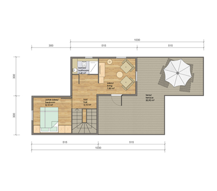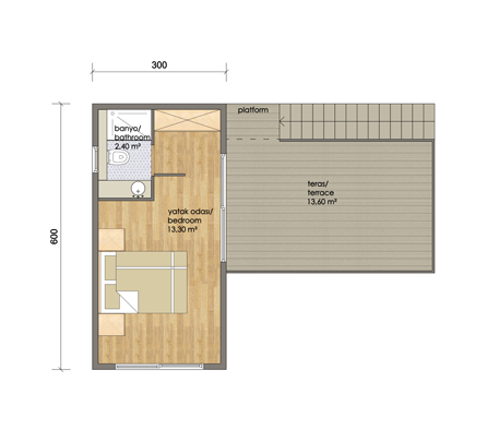 YATAK ODASI (1. KAT) - 13,30 metrekare