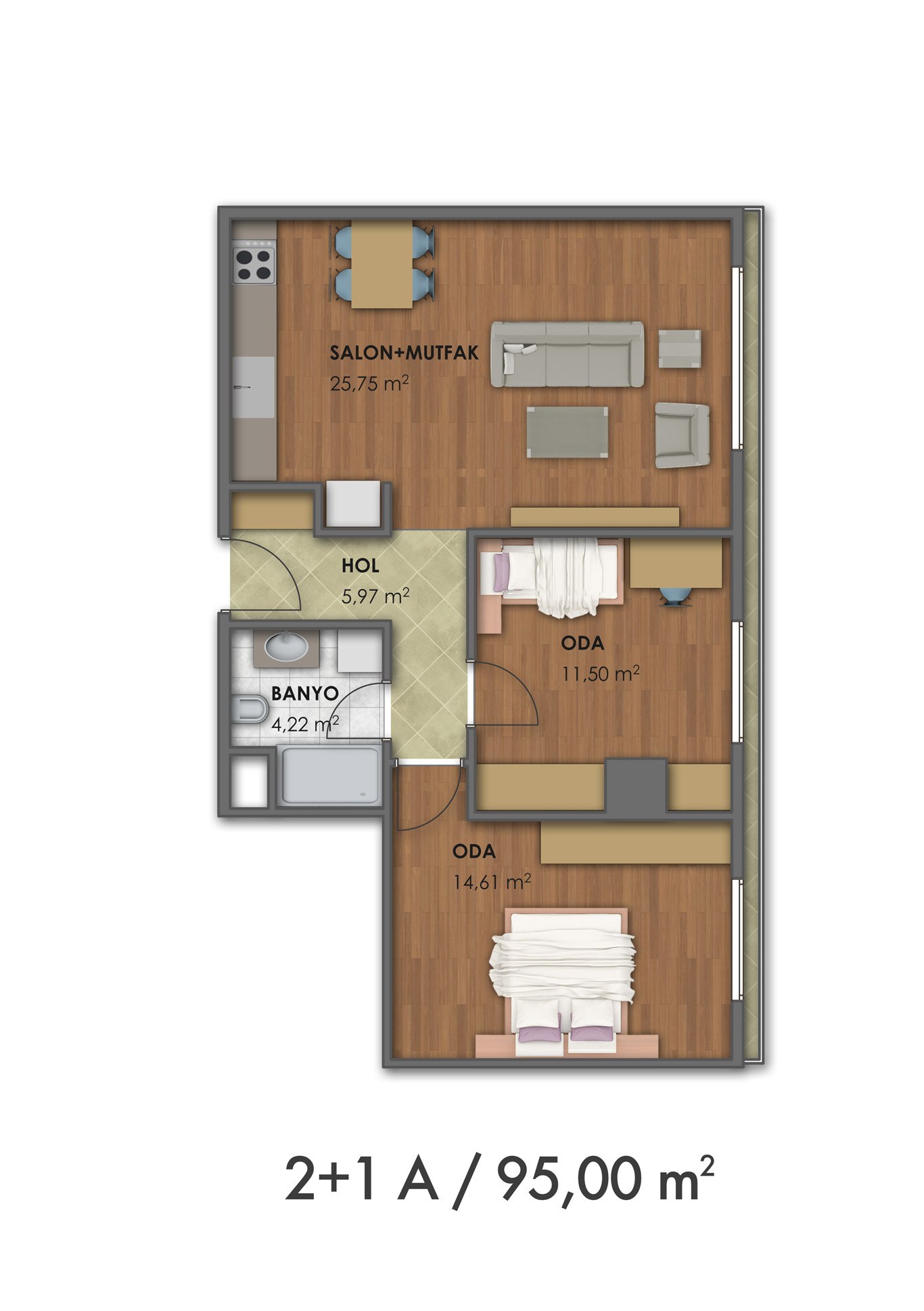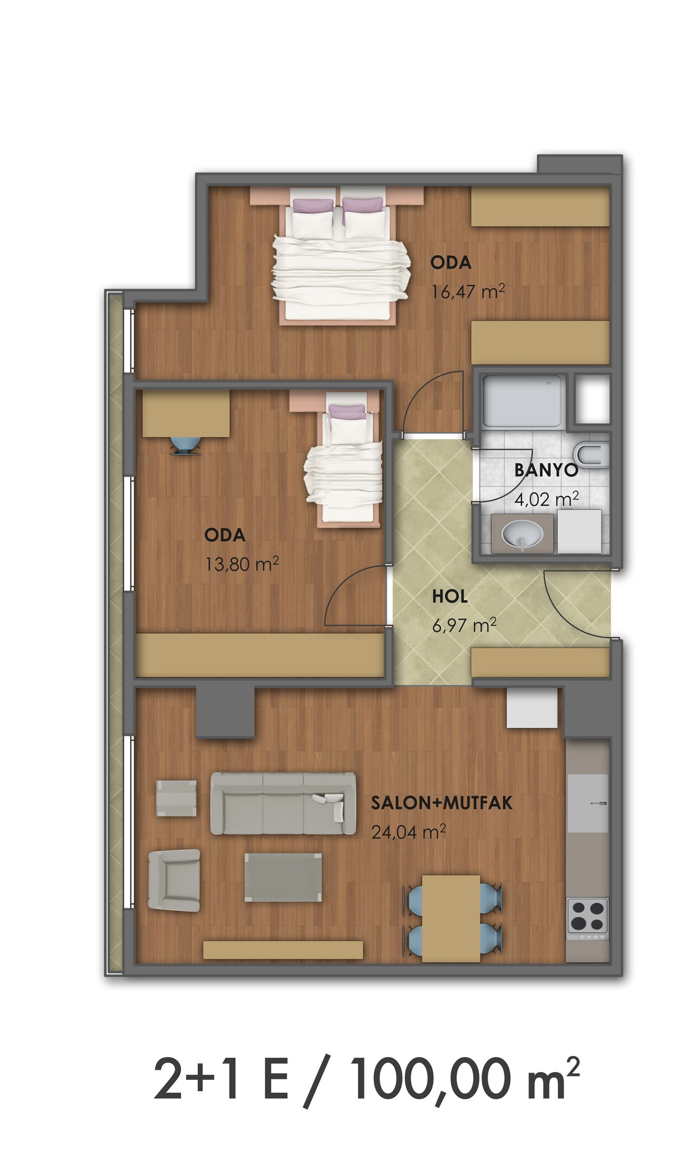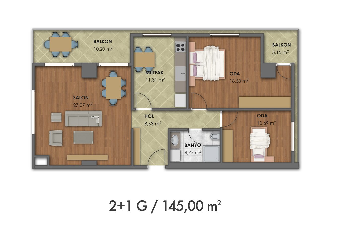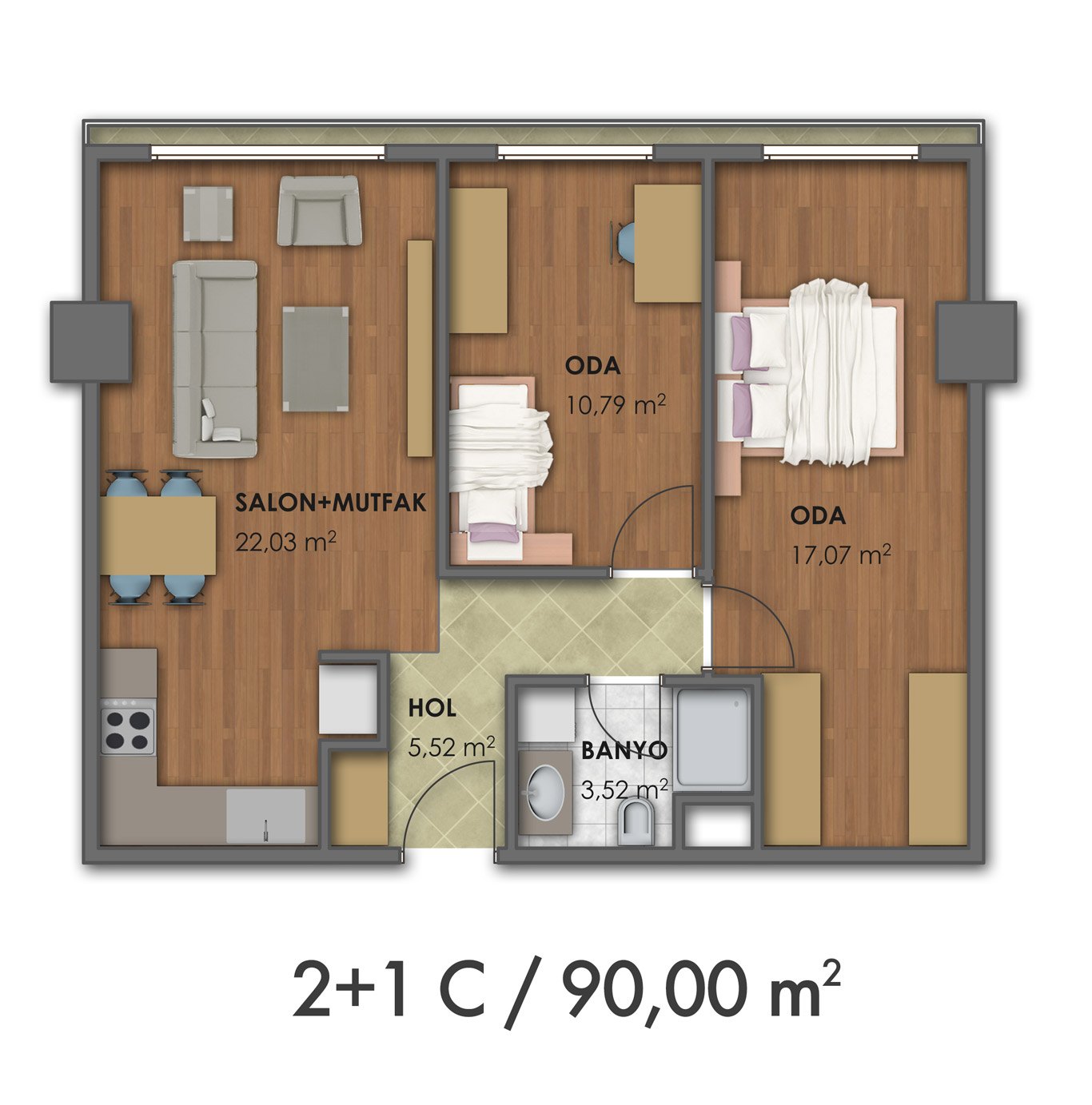 Esenyurt Ncadde Hayat Residence projesinde 1 oda 1 salon daireler 60, 65 ve 80 metrekare, 2 oda 1 salon daireler 90, 95, 100, 105, 110 ve 145 metrekare büyüklüklerle dizayn edildi.