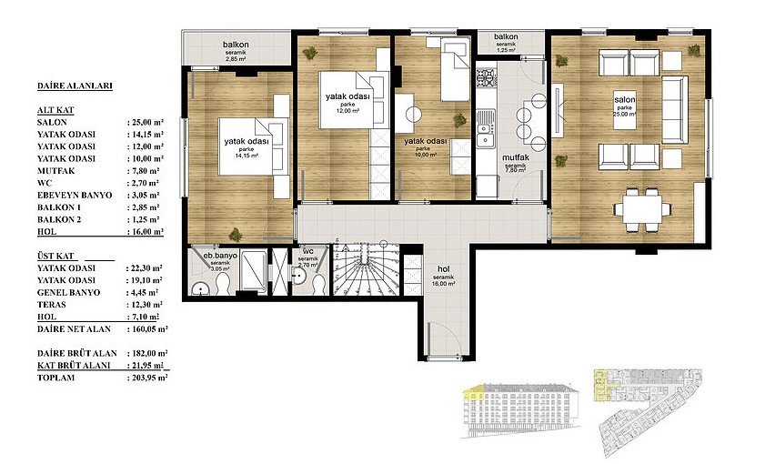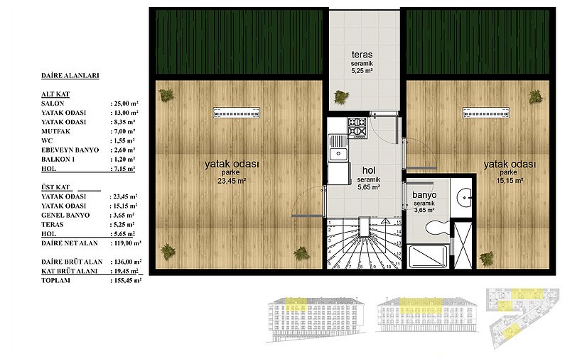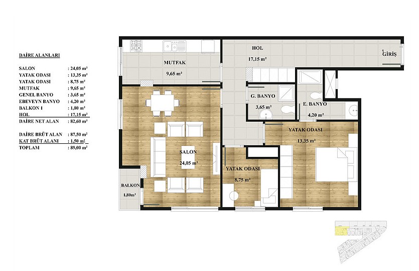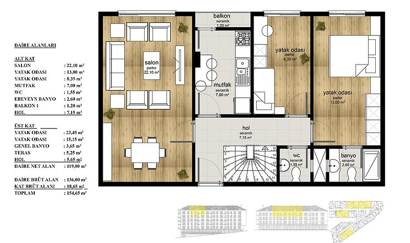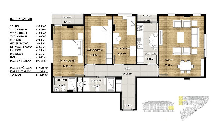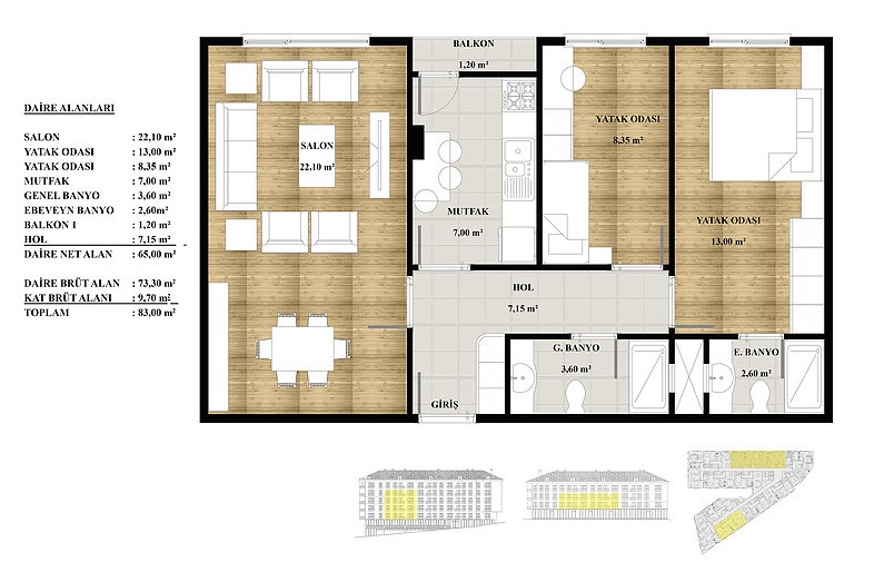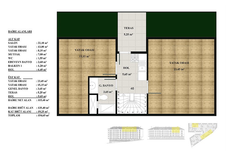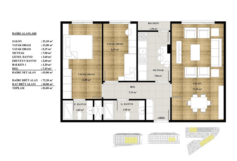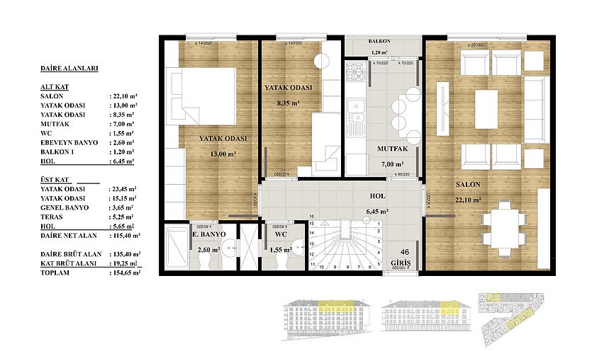 Nova Suites Eyüp projesinde 1+1 daireler 55 metrekare, 2+1 daireler 83 metrekare, 3+1 daireler 118 metrekare, 4+1 dubleksler 170 metrekare, 5+1 dubleksler ise 208 metrekare büyüklüklerle dizayn edildi.