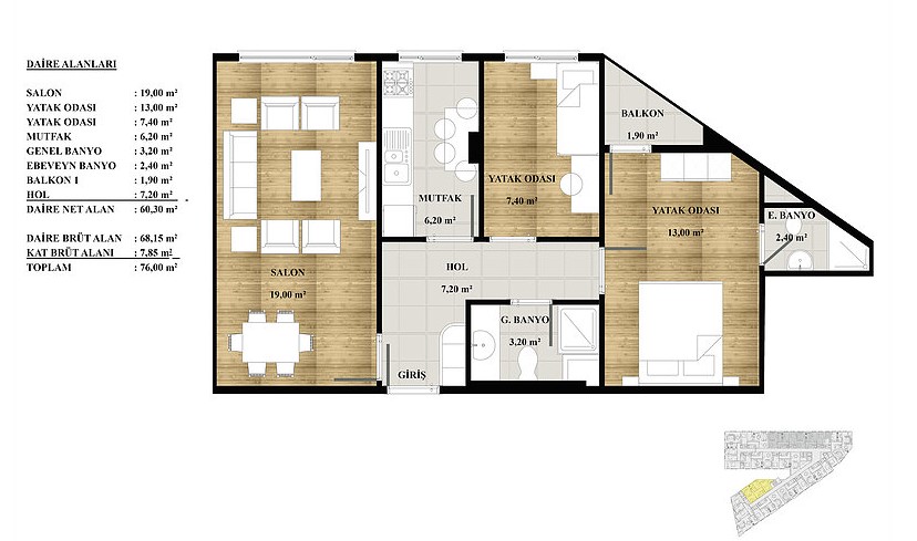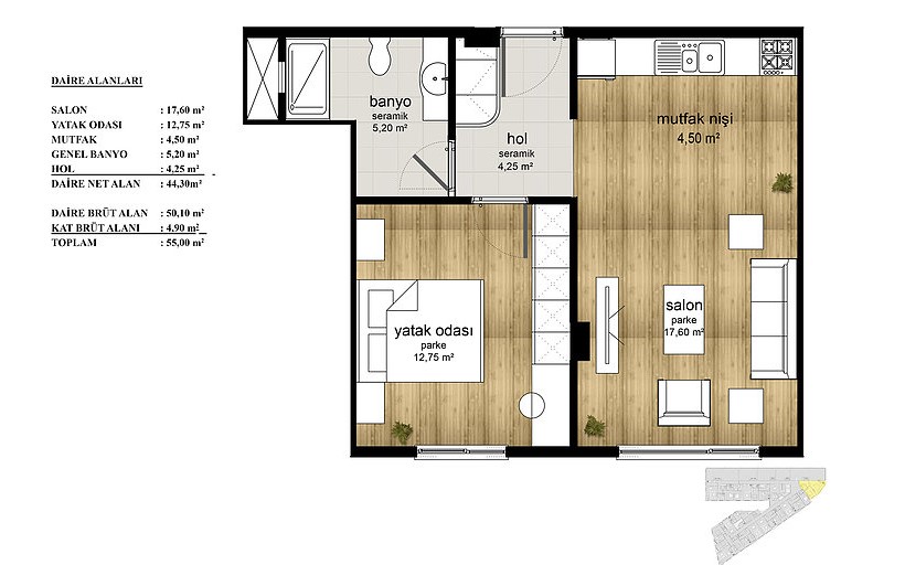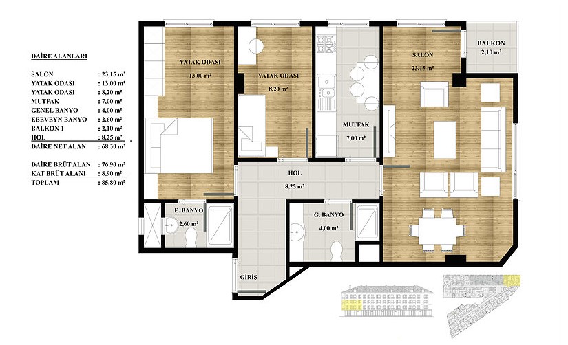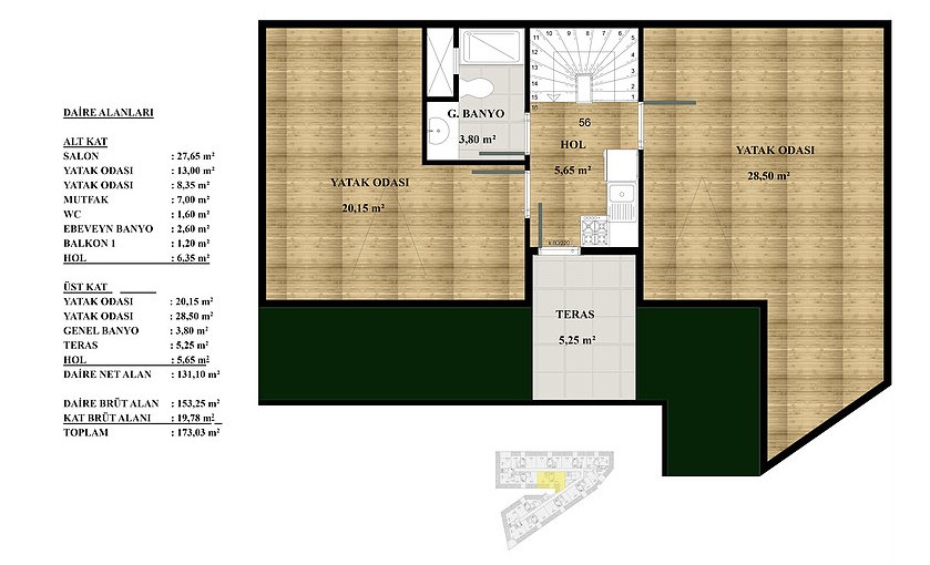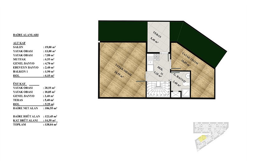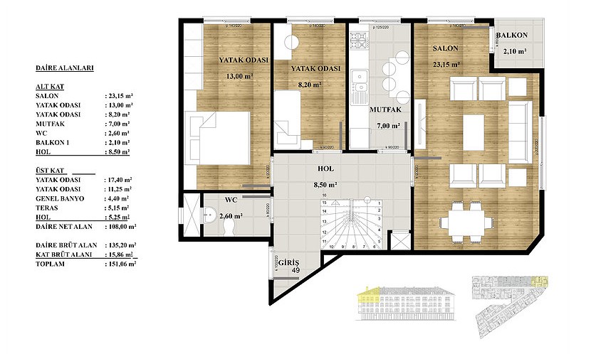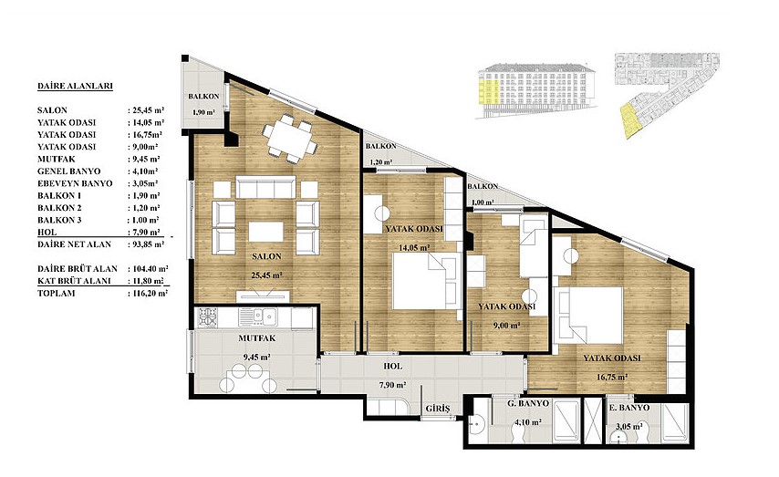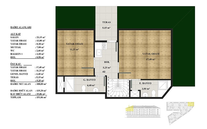 Nova Suites Eyüp projesinde 1+1 daireler 55 metrekare, 2+1 daireler 83 metrekare, 3+1 daireler 118 metrekare, 4+1 dubleksler 170 metrekare, 5+1 dubleksler ise 208 metrekare büyüklüklerle dizayn edildi.