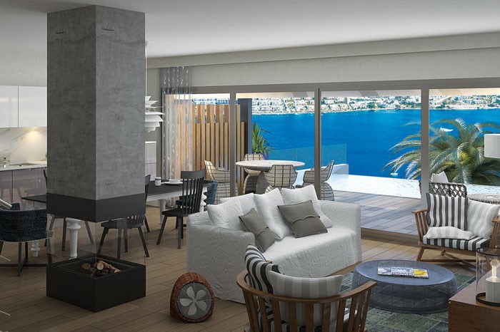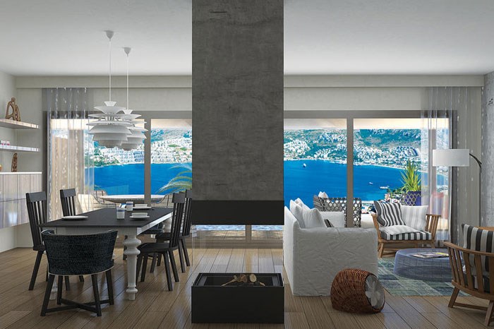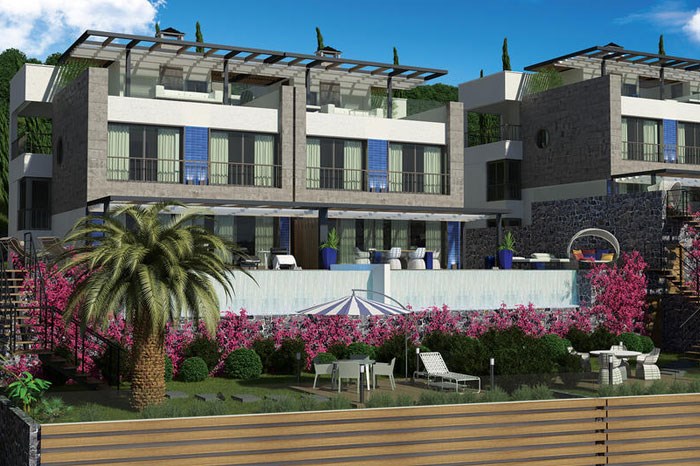 Muğla'nın Bodrum bölgesinde KLT Yapı'nın 4 bin metrekarelik arsa üzerinde 8 özel villadan oluşan Novo Maison projesinde yalnızca büyüklüğü 450 metrekare olan 5 oda 1 salon daire seçeneği sunuluyor.