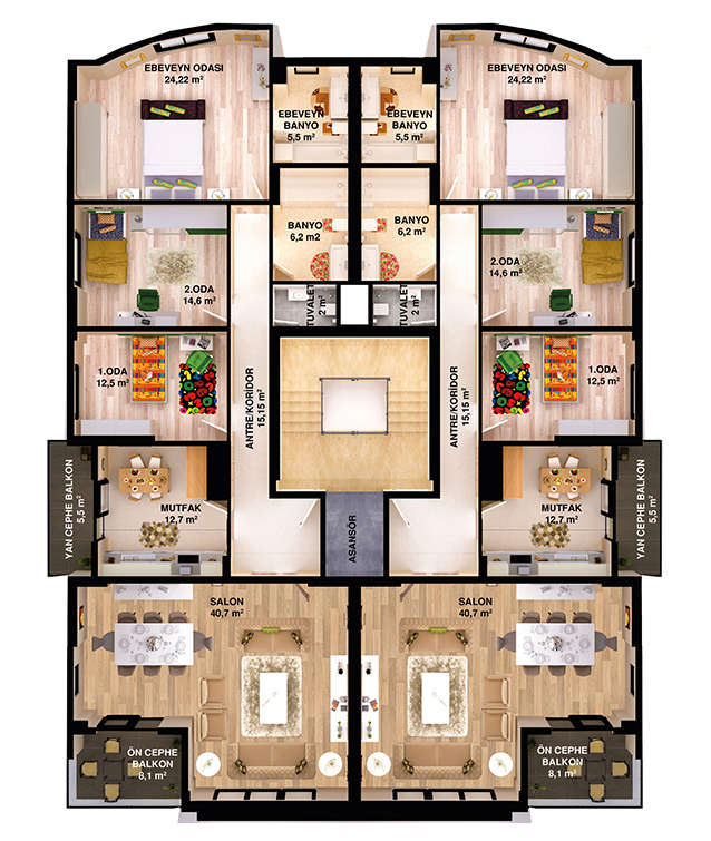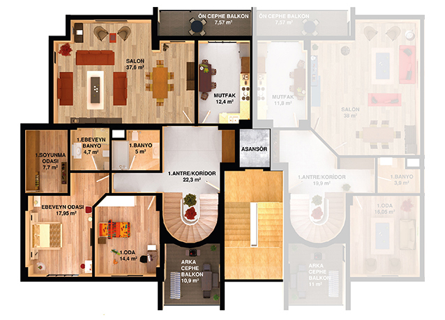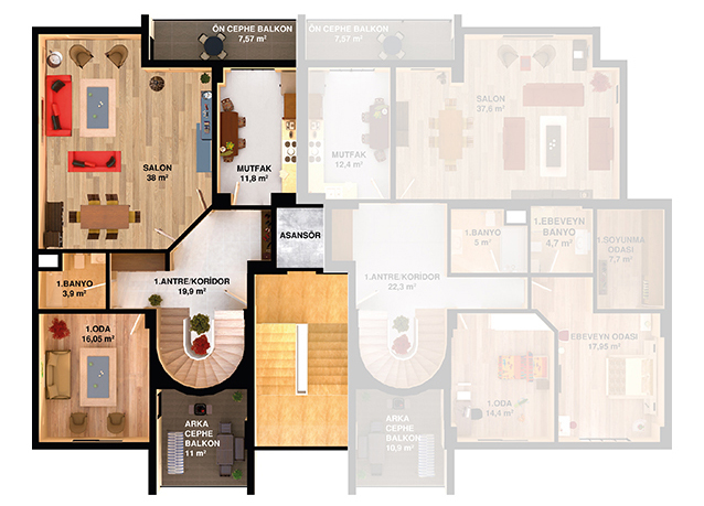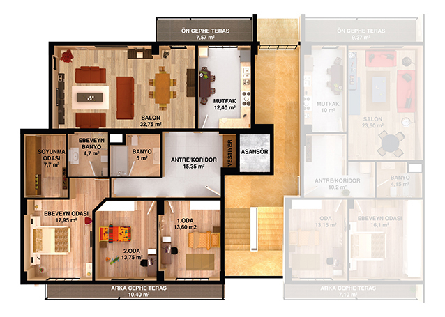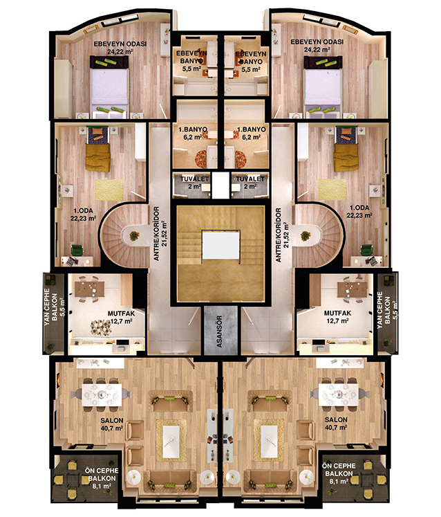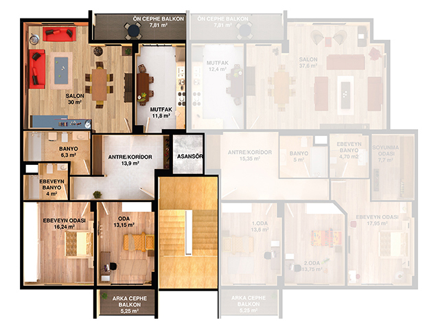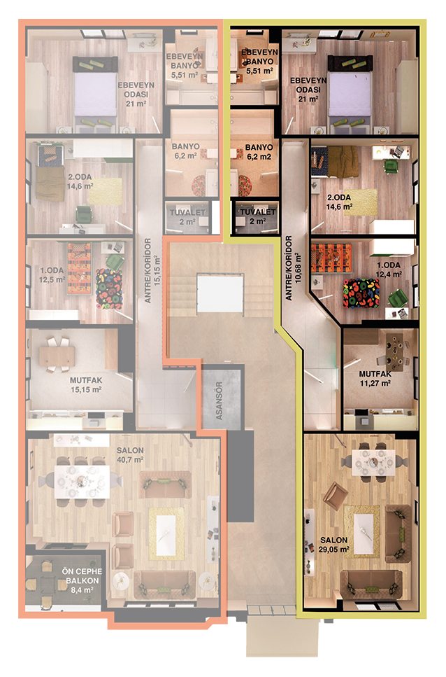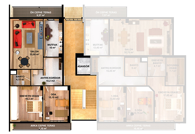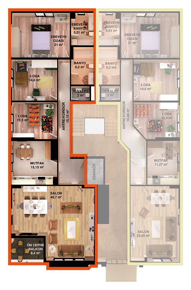Toplam 116 adet konuttan meydana gelen Orange City projesinde 2 oda 1 salon, 3 oda 1 salon ve 4 oda 1 salon dubleks daire seçenekleri yer alıyor.