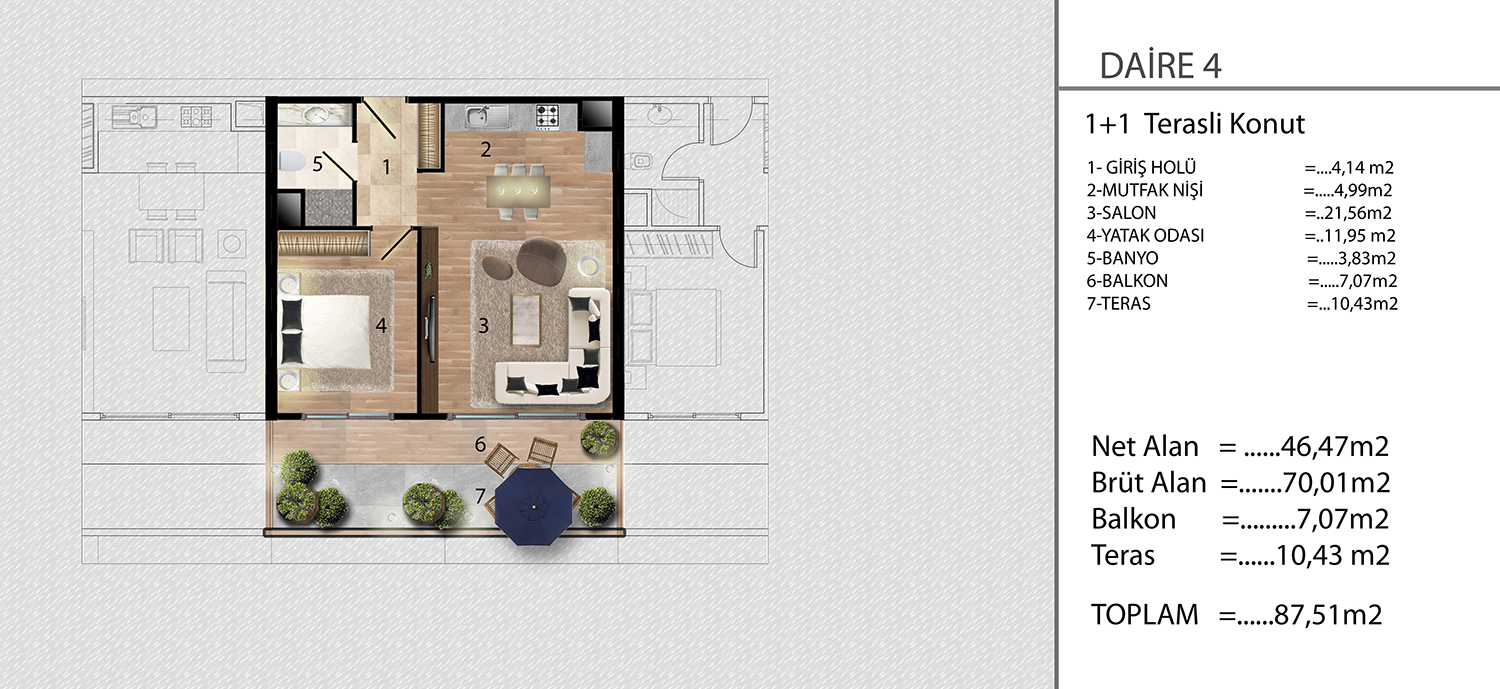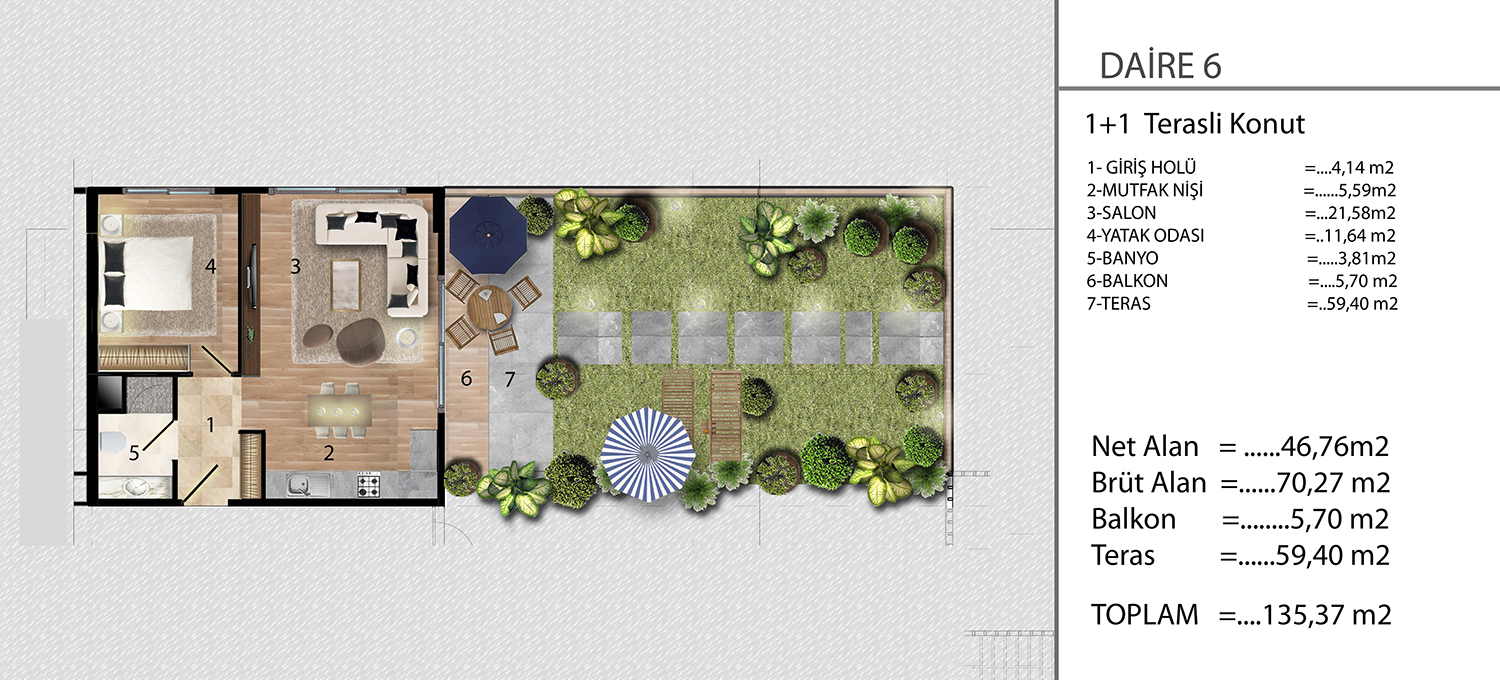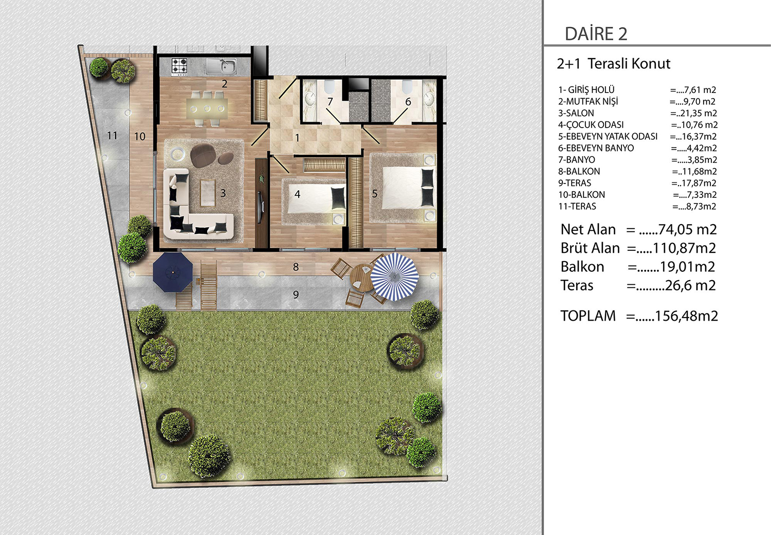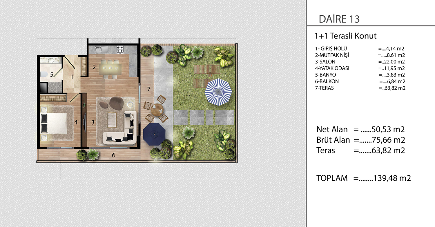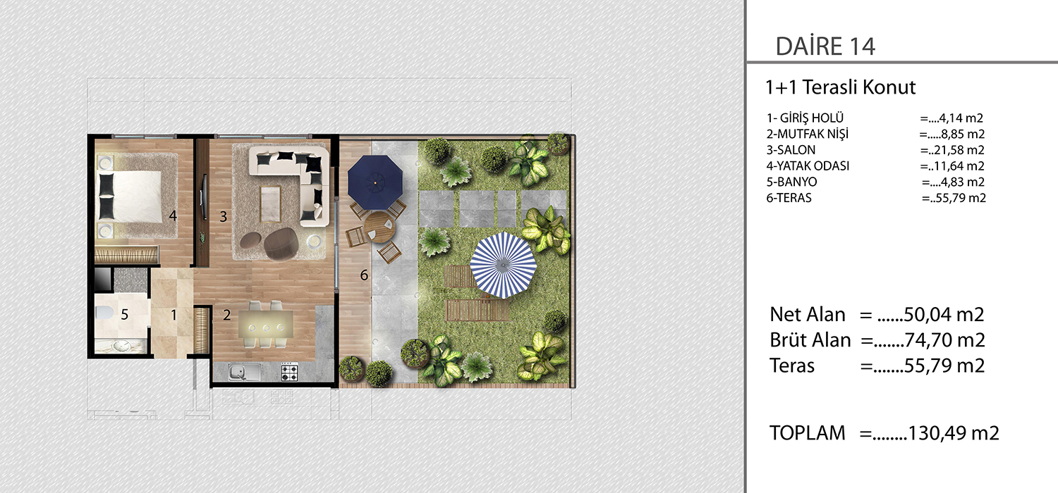 Toplam 42 adet konut ve 14 adet ticari birimden meydana gelen Pashacity projesinde 14 dairenin büyüklükleri 17 ile 120 metrekare arasında değişen terası bulunuyor.