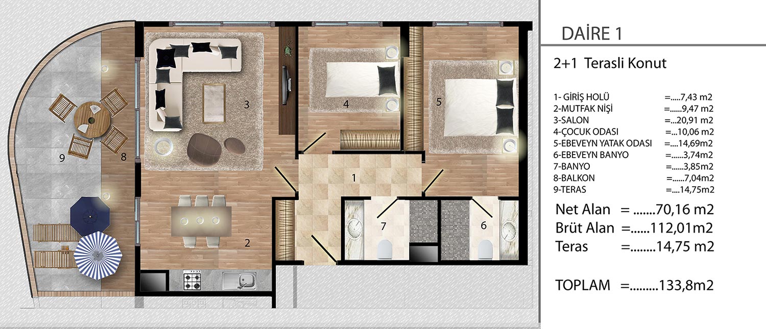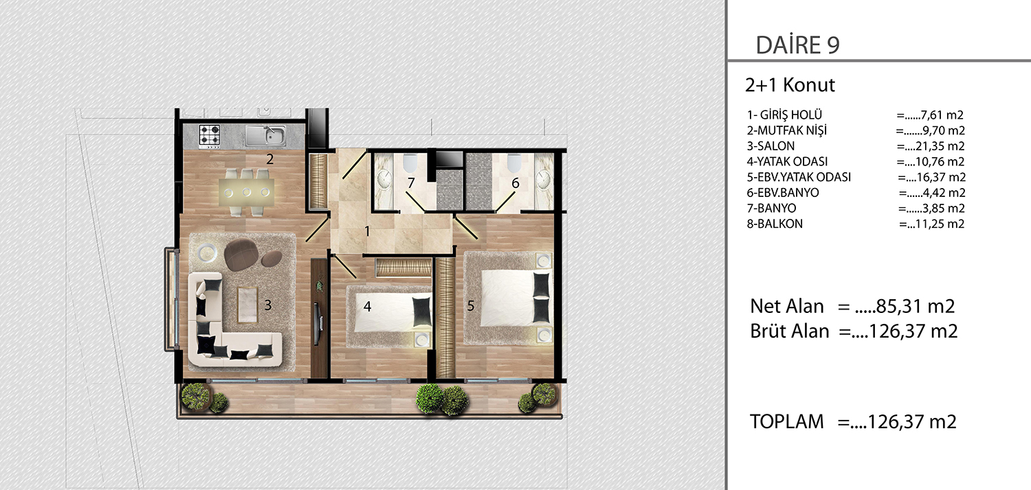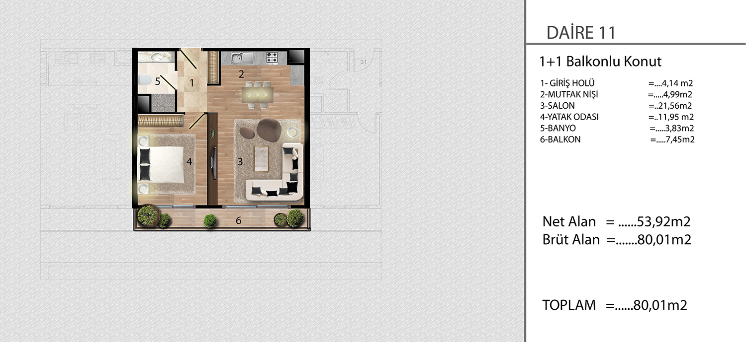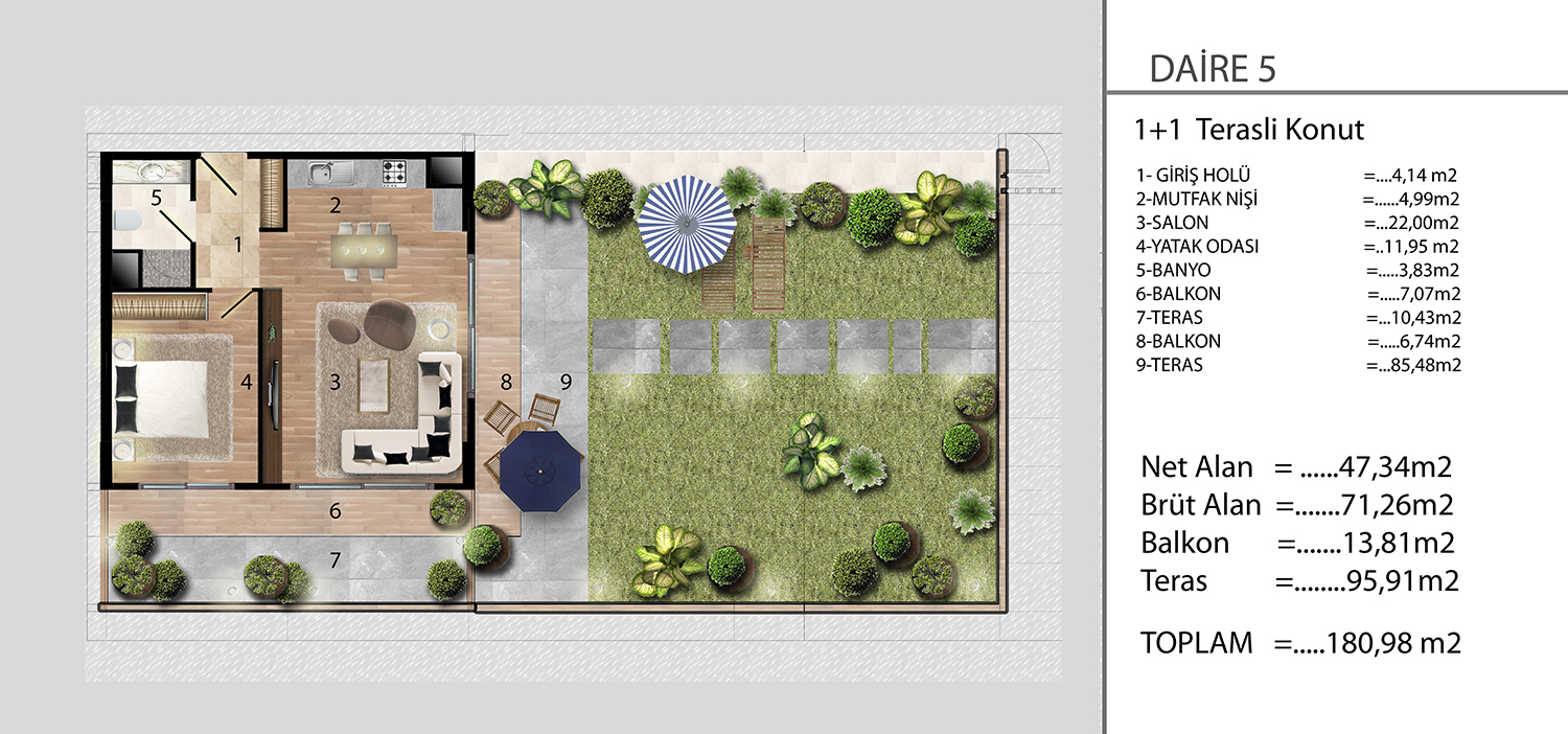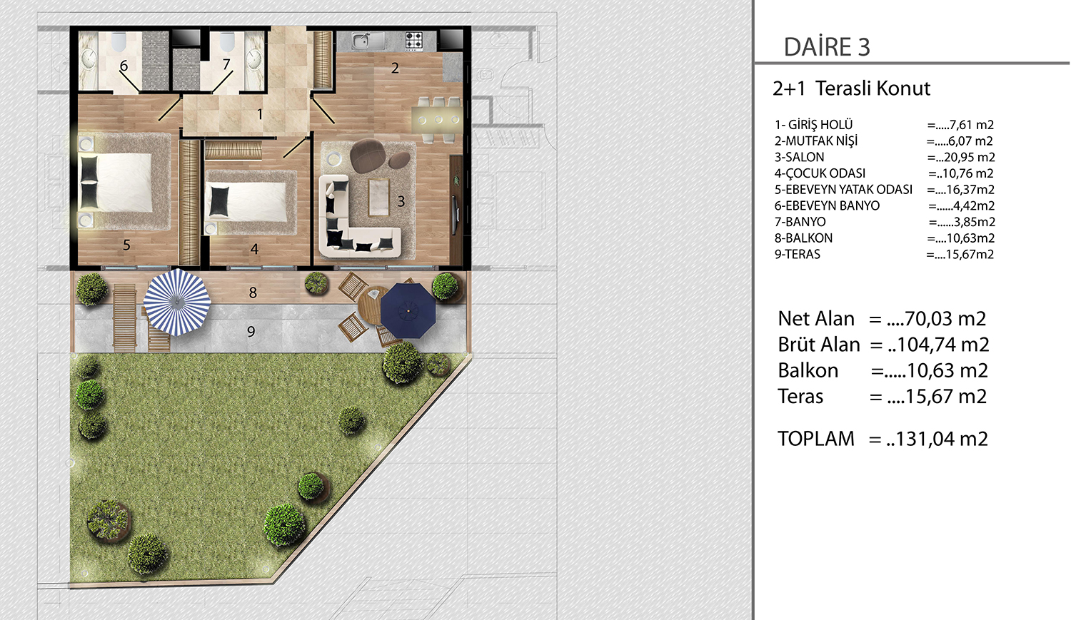 Toplam 42 adet konut ve 14 adet ticari birimden meydana gelen Pashacity projesinde 14 dairenin büyüklükleri 17 ile 120 metrekare arasında değişen terası bulunuyor.