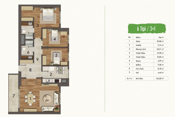 3+1 daireler : 525 bin lira ile 710 bin lira arasında değişien fiyatlarla