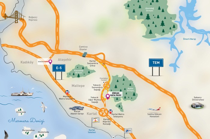 İstanbul Anadolu Yakası’nın Kartal bölgesinde hayata geçirilen Rönesans Sayfiye projesi Adalar'ın karşısında ve Aydos Ormanı'nın hemen yanı başında yükseliyor. 75 milyon dolar yatırımla hayata geçen Rönesans Sayfiye projesinde geniş balkonlar, teraslar ve kat bahçeleri yer alıyor. Rönesan Sayfiye, bulunduğu konum itibari ile, E-5 ve Kartal Metro istasyonuna 3 kilometre, TEM’e ise 4 kilometre uzaklıkta yer alıyor. Proje, özel araçla ulaşımın yanısıra toplu taşıma ile de ulaşım rahatlığı sağlıyor.