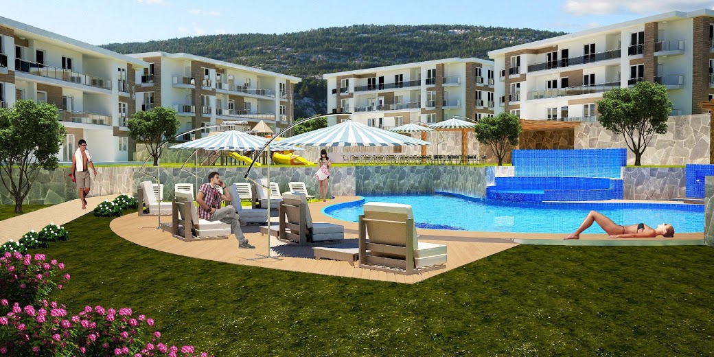 - Yüzde 80 yeşil alana sahip İzmir-Bodrum çevreyolu üzerinde Şehir merkezine 5 dakika uzaklıkta konumlanan proje yaz kış tatil keyfi sunuyor.