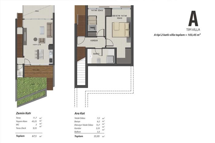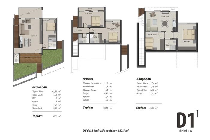 - Solemar Adabükü projesinde dubleks ve tripleks tipinde inşa edilen villaların 9 farklı seçeneği bulunuyor.