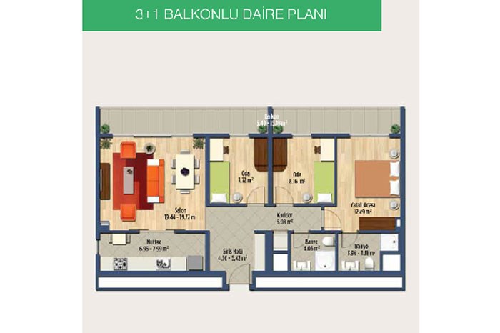 Stüdyo, 1 oda 1 salon, 2 oda 1 salon ve 3 oda 1 salon konut tipi seçeneklerinin sunulduğu projede daire büyüklükleri 31 ile 143 metrekare arasında değişiyor.